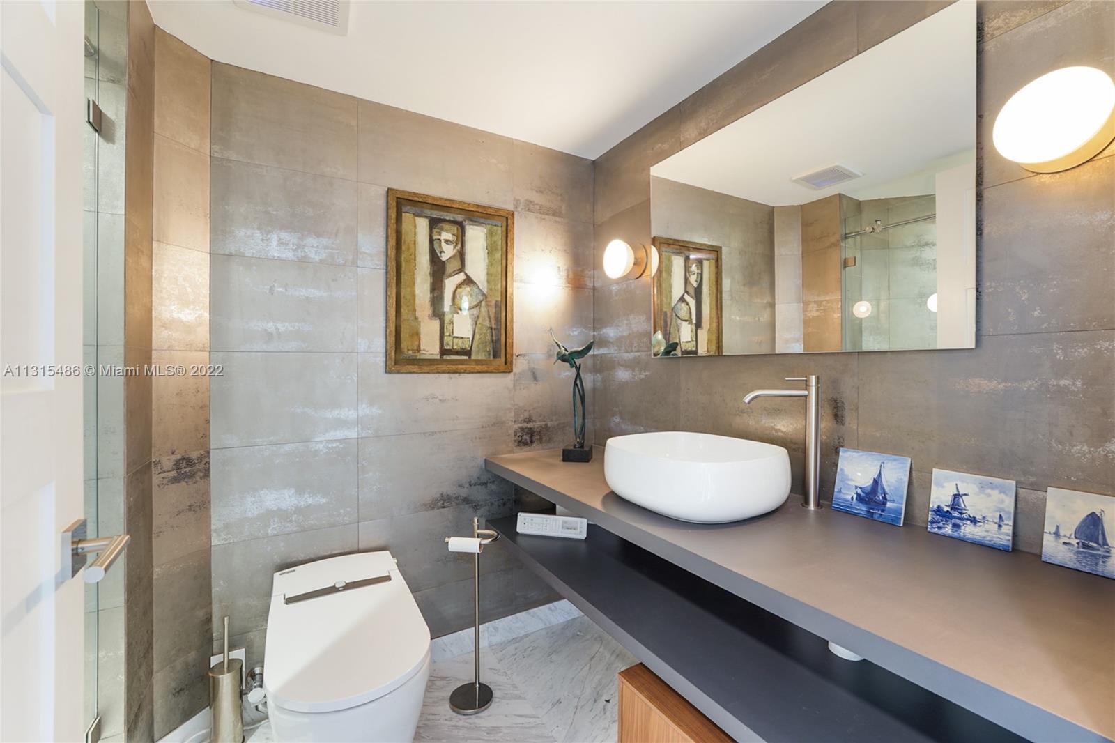 If you love design and appreciate luxury, this is the unit for you! Beautifully crafted with an open plan where the Italian kitchen, dining, and living room, are framed by floor-to-ceiling glass windows, opening to the star of the show: A breathtaking view of the blue Intracoastal, golf course, and the Miami skyline. Step out to the spacious rounded balconies and enjoy the endless Atlantic Ocean views and the most spectacular sunsets. After a meticulous renovation in 2020, this extraordinary Oceanfront Condo is priced to sell! The attention to detail, from the Greek Volakas marble floors, Wolf appliances, Subzero fridge, Toto electric bidets, Ann Saks tiles in bathrooms, walk-in glass showers,electric linen curtains and custom-made Italian closets and cabinetry, this gem won’t last.