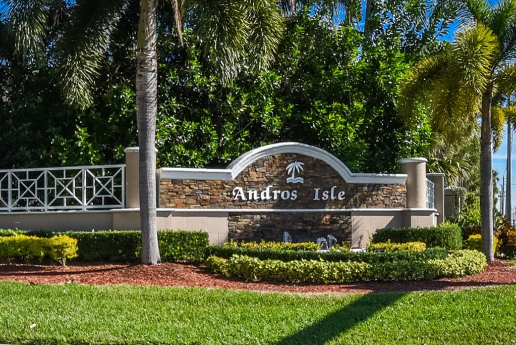 Smart Home with RARE, OVERSIZED LOT!This is a unique opportunity to create your own private tropical oasis in the exclusive gated community of Andros Isle. This 3 bed 2 bath villa offers plenty of outdoor space for a large pool, room for sports and games or planting a native garden paradise. Feel safe and secure with FULL HURRICANE IMPACT GLASS PROTECTION! NEW Washer & Dryer. NEW AC 2021. Upgraded kitchen includes premium appliances with instant hot water heater installed in sink. Plenty of room to entertain in the open concept great room.