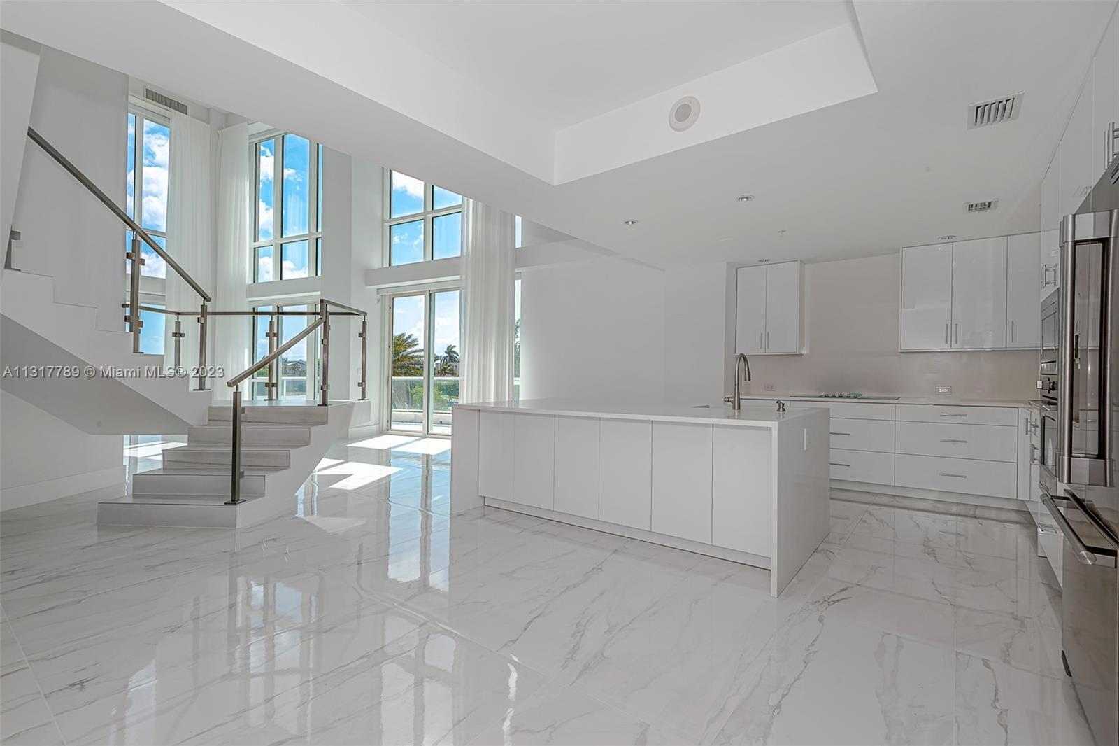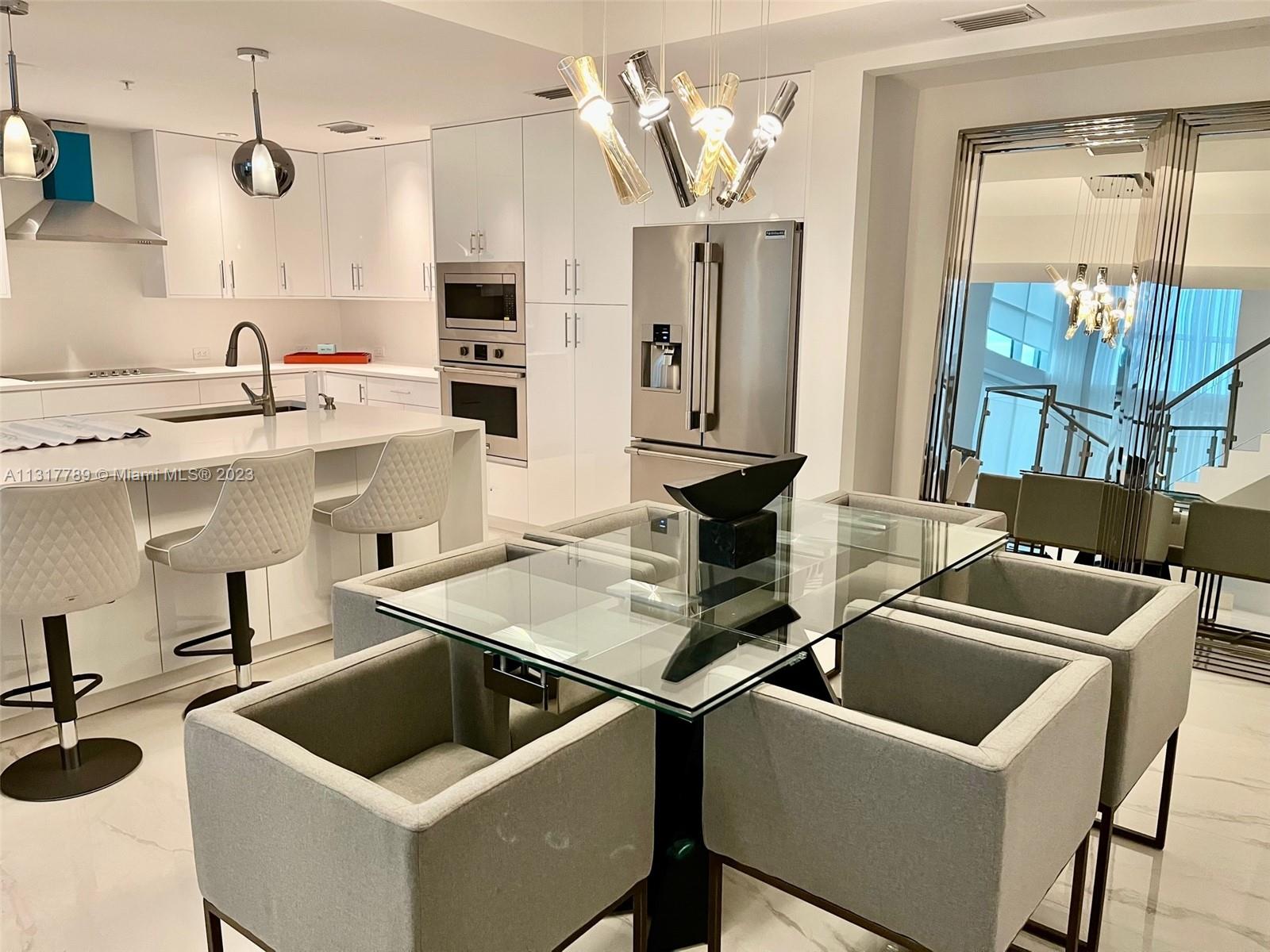 BACK ON MARKET FURNISHED !NEWLY RENOVATED, $200,000 upgrades. Rarely available 2427 Sq ft under. 2 story residence high ceilings,3/1 half baths with 3 bedrooms . Spacious wide open floor plan. New A/C ,water heater ,kitchen island with FRIGIDAIRE MASTER SERIES appliances, white cabinetry, quartz countertops. STEEL staircase with glass railing. Ceramic flooring 24 X 48. Luxury marble baths, dual sinks and jacuzzi. Built out walk in spacious closets. 3 garage spaces(#127,131,132)storage space, furniture INCLUDED .40,000 sq. ft. Resort like building with every amenity on the 4th floor, lush landscaping gardens, an Infinity edge pool, new summer kitchen, separate Hot Tub ,BBQ areas & fire pit ,tennis courts, media room & library. Across from newly renovated Pier. SEE BROKERS REMARKS