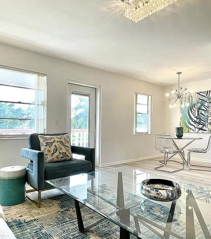 Motivated sellers. Tenant in place. Gorgeous and newly renovated 2 Bed 1.5 Bath Condo is move in ready. Bosch Washer/Dryer in unit.New A/C installed 2020. New porcelain floors in kitchen and bathrooms with Fabuwood custom cabinetry and quartz countertops.New floors installed Aug. 2022 in living/dining. Popcorn ceilings removed, freshly painted throughout. Upgraded modern light fixtures, extra large smart TV conveys. Screened-in tiled balcony with open meadow views. Light and bright apartment. Furniture, artwork and decorative accessories are not included, but are negotiable. Short distance to Walgreens & Community Center.