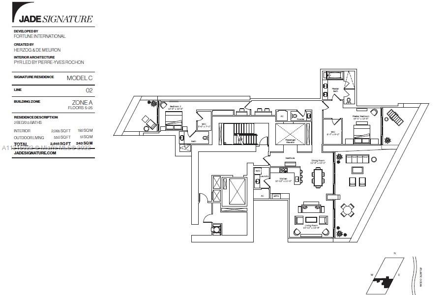 JADE Signature was designed by Pritzker-prize-wining architects, Herzog and de Meuron. The interiors have been designed by world-renown, Pierre Yves Rochon. This sough-after 2-bedroom features a large great room and an oversized oceanfront terrace. Boast in amazing and unobstructed views from this flow-thru unit. Floor to ceiling windows throughout the entire apartment. 3 Full floors of common areas with pieces from Hermes, Kagan, Knoll,Rochon, among many others. Amenities include: Club Room, Breakfast Café, Library, Business Center, Play Rooms,Beach Bar & Grill, Tata Harper Spa with steam, sauna, Hamman, salon and water therapy terrace. Extensive fitness facilities with spinning studio, Pilate’s studio, outdoor meditation deck as well as a full gym with Techno-Gym equipment.