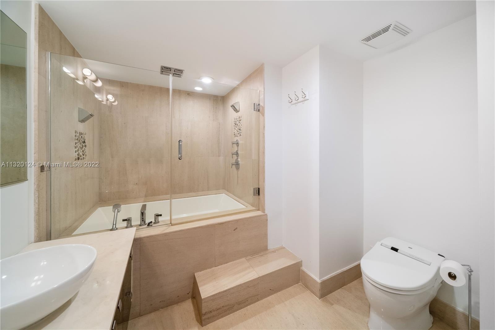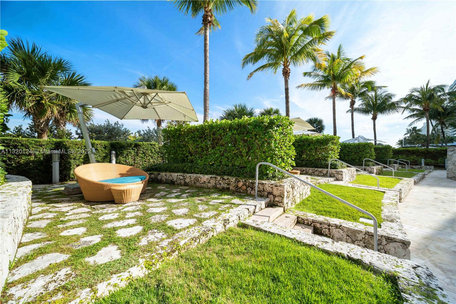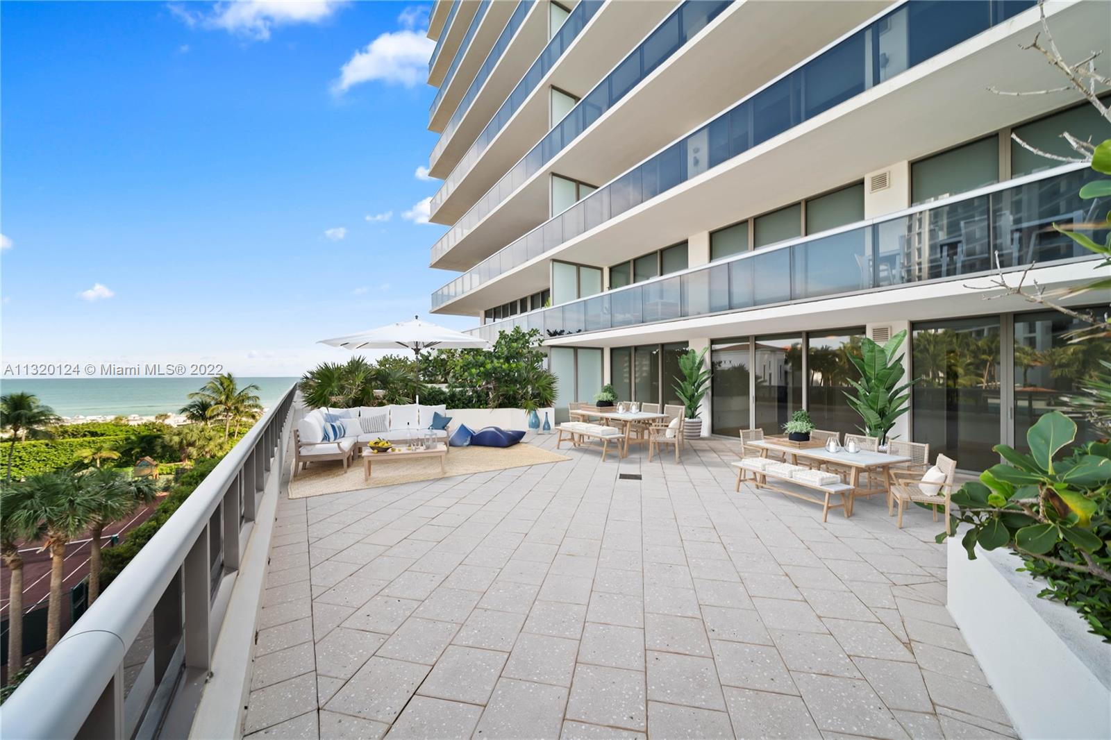 This stunning waterfront unit has floor to ceiling windows leading out onto a 1,000+ sf private terrace, filling the unit with natural light and making it feel very spacious. Enjoy 2 bedrooms, each with their own bathroom plus an additional half bathroom. The primary bedroom features a walk-in closet. The water heater was recently replaced with a tankless heater, opening up additional closet space. The unit has in-unit laundry tucked away in a discreet closet. The Mei has recently renovated to keep up with its superior standards. The building has a relaxed, zen feel and truly feels like you're at a 5-star resort. The gorgeous pool and garden area opens up onto the Miami Beach boardwalk, giving you direct beach access. Enjoy exceptional, beachfront resort living with a huge private terrace.
