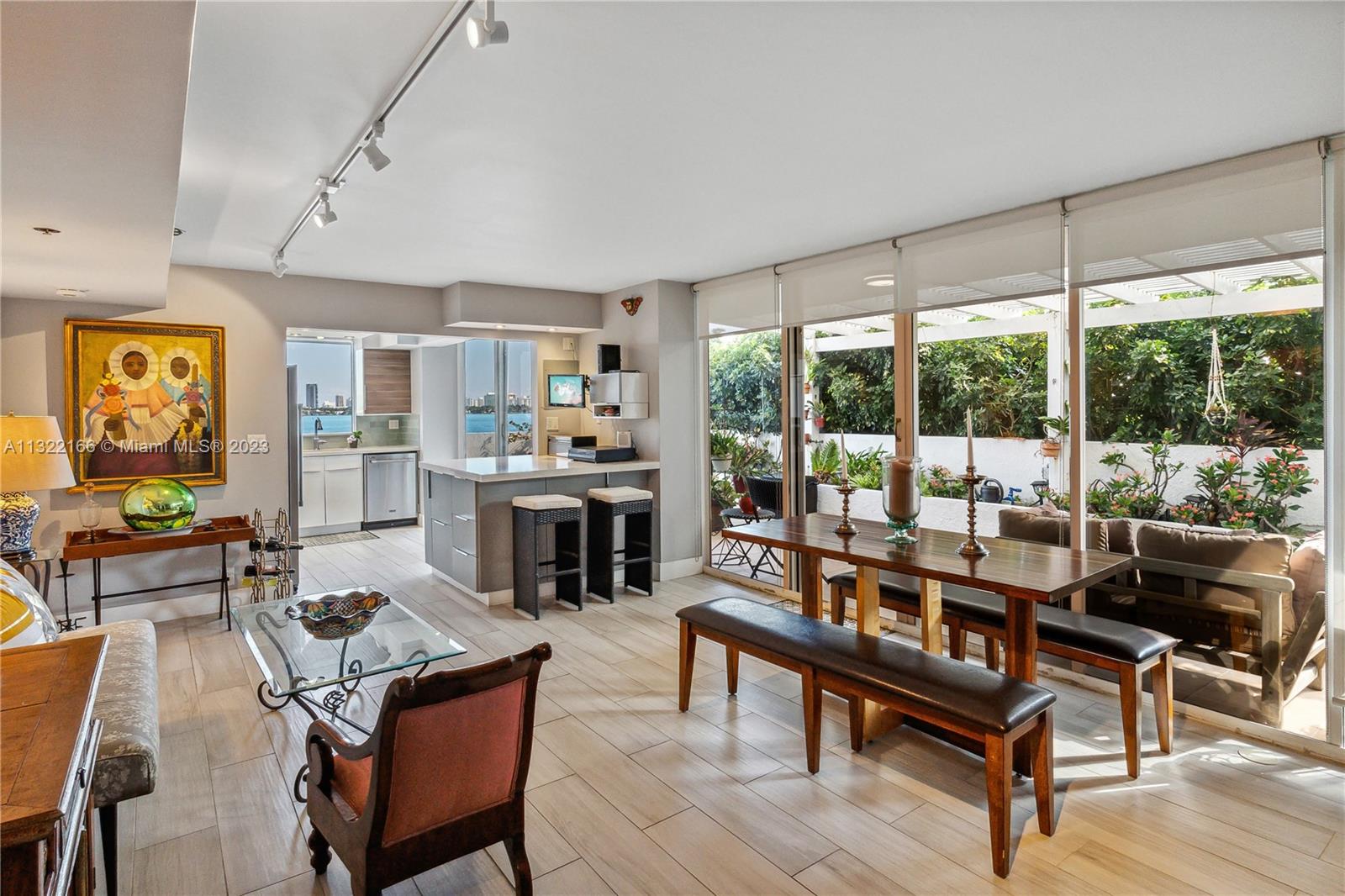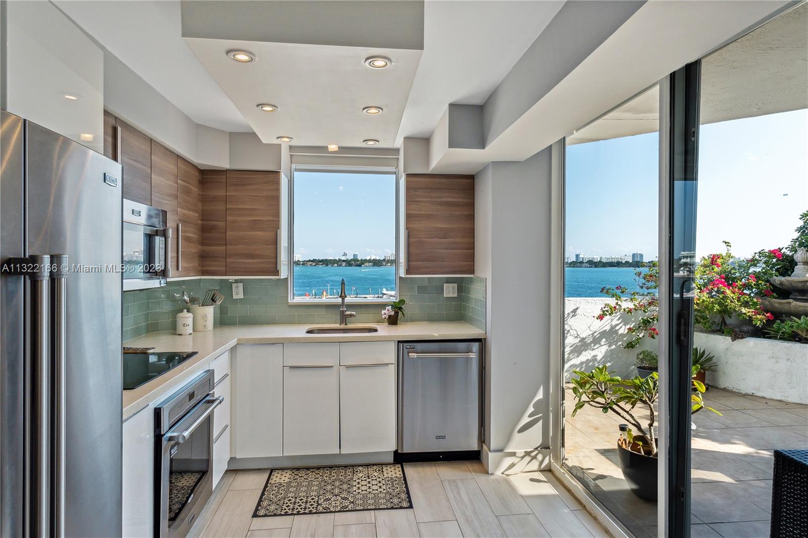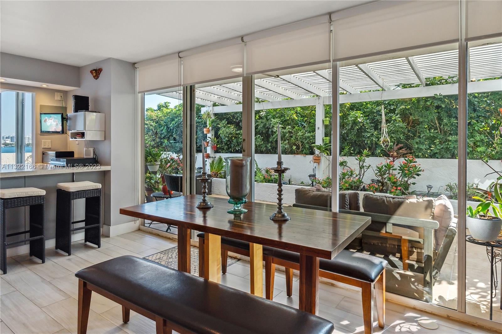 ONE OF A KIND corner lanai unit with stunning views of Biscayne Bay. This fully renovated 2 bedroom, 2 bath residence with washer and dryer offers an additional 300sf+ of outdoor living space. Entertain or enjoy coffee overlooking the Marina and Biscayne Bay in your private garden oasis setting. Quiet and tranquil, the unit feels more like a waterfront house. Low floor allows owner entry without the use of an elevator and recently renovated pool amenities are just a door away. Low maintenance, 2 covered parking spaces. Suberb location in up and coming North Bay Village, just 10 minutes to the Beach.