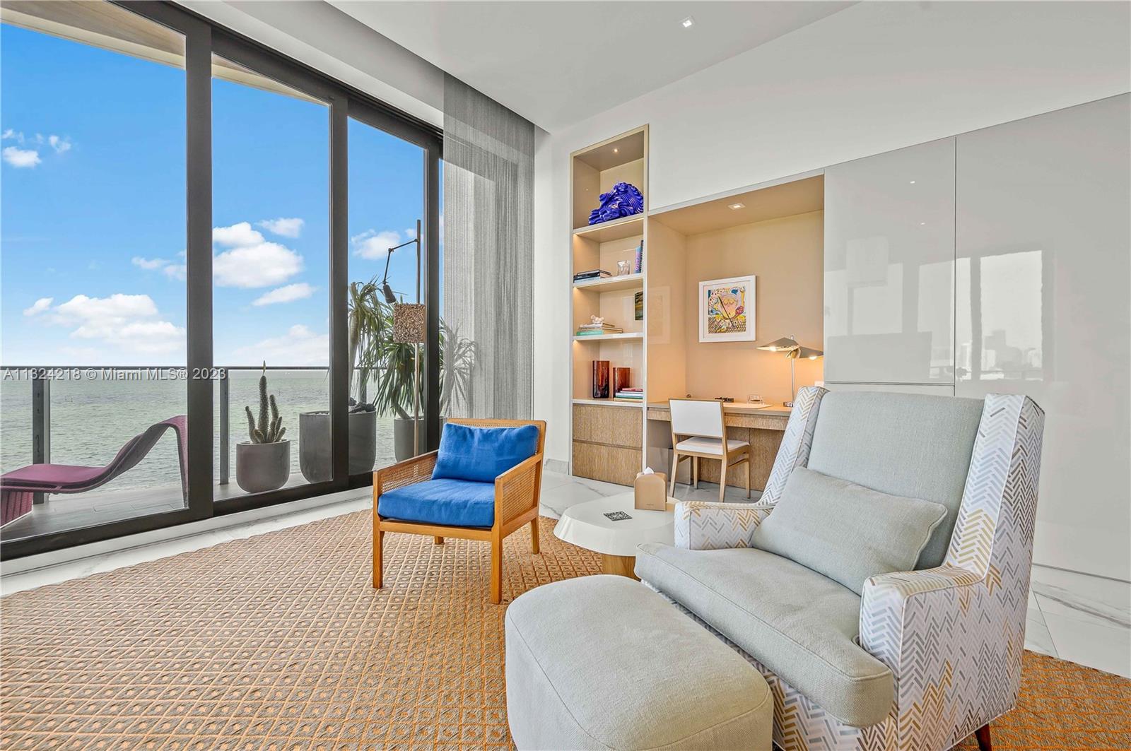 Exclusive corner Penthouse with unobstructed water views in one of the only waterfront Boutique residences in Coconut Grove. Designed for both beauty and functionality, this stunning bayfront residence has been fully renovated with exquisite attention to detail. Revised floor plan of two bedrooms and two and a half bathrooms maximizes natural light and bay views. Italian Porcelain floors, custom cabinets, workstation, wall finishes, built-in storage & walk-in closets. Designer light fixtures, brand-new kitchen with Wolf and Sub-Zero appliances; all complemented by a vibrant interior design. Smart Home controls sound system, lights, shades & blinds. Luxury Resort-Style Amenities inc. Gym, Spa w/Hammam, outdoor movie theater. Rooftop deck with pool, cabanas, outdoor grill & summer kitchen.