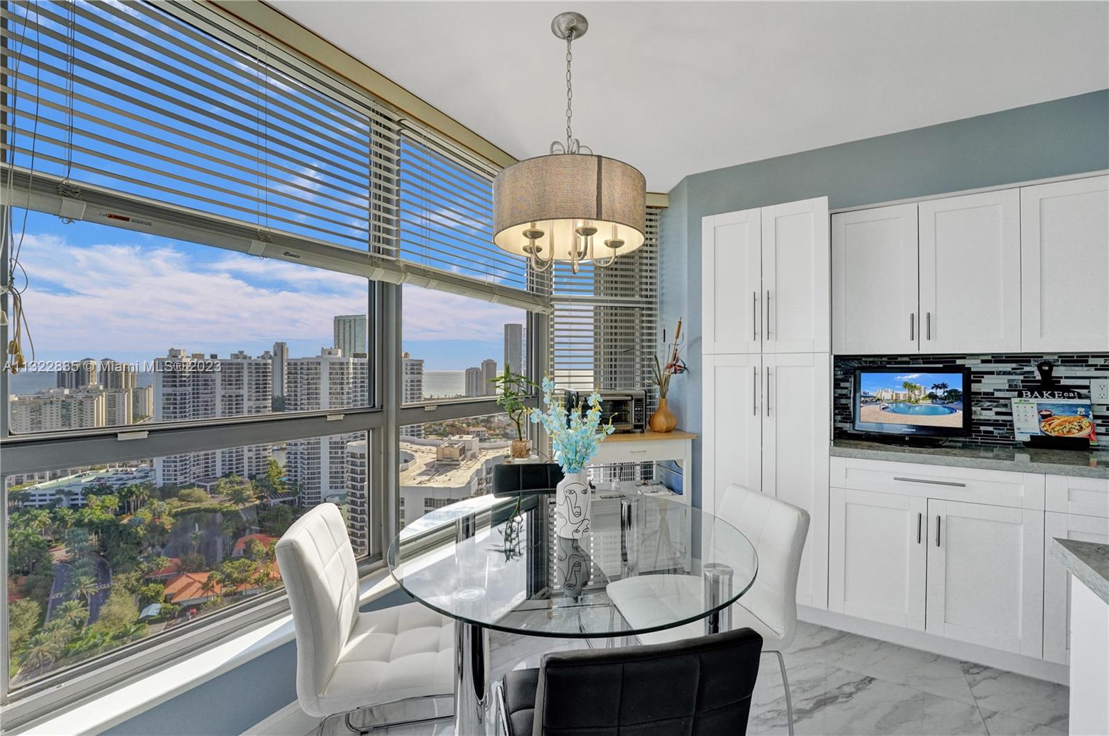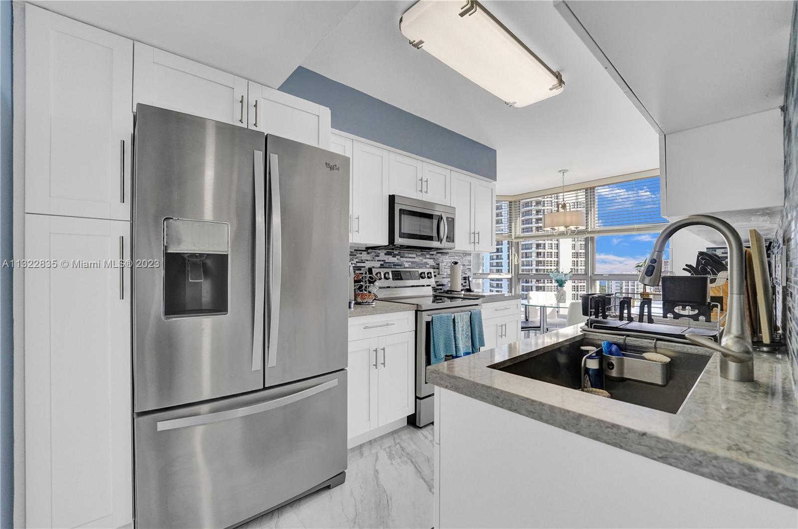 BACK ON THE MARKET Breathtaking views from this beautifully remodeled 3 BD, 2 BA corner unit in the 30th floor in desirable Tower 500. This bright condo features a contemporary look, with present-day sought-after neutral colors, 32 inch porcelain tiles & new carpet in bedrooms. Kitchen w/ Quartz counters, decorative tiled back splash, white cabinets, SS appliances, white Bosch dishwasher. Baths w/ Quartz counters. Side by side W/D in 2nd bath. Accordion hurricane shutters. Mystic Pointe, an all-inclusive, gated community providing an active lifestyle w/8 lighted clay tennis courts, paths along the bay, playground, dry cleaning, mini market, restaurant, salon, dog-park & marina. Bay front pool & Jacuzzi, a spa w/massage therapy service, 2-story gym, party room, a Library & billiard room.