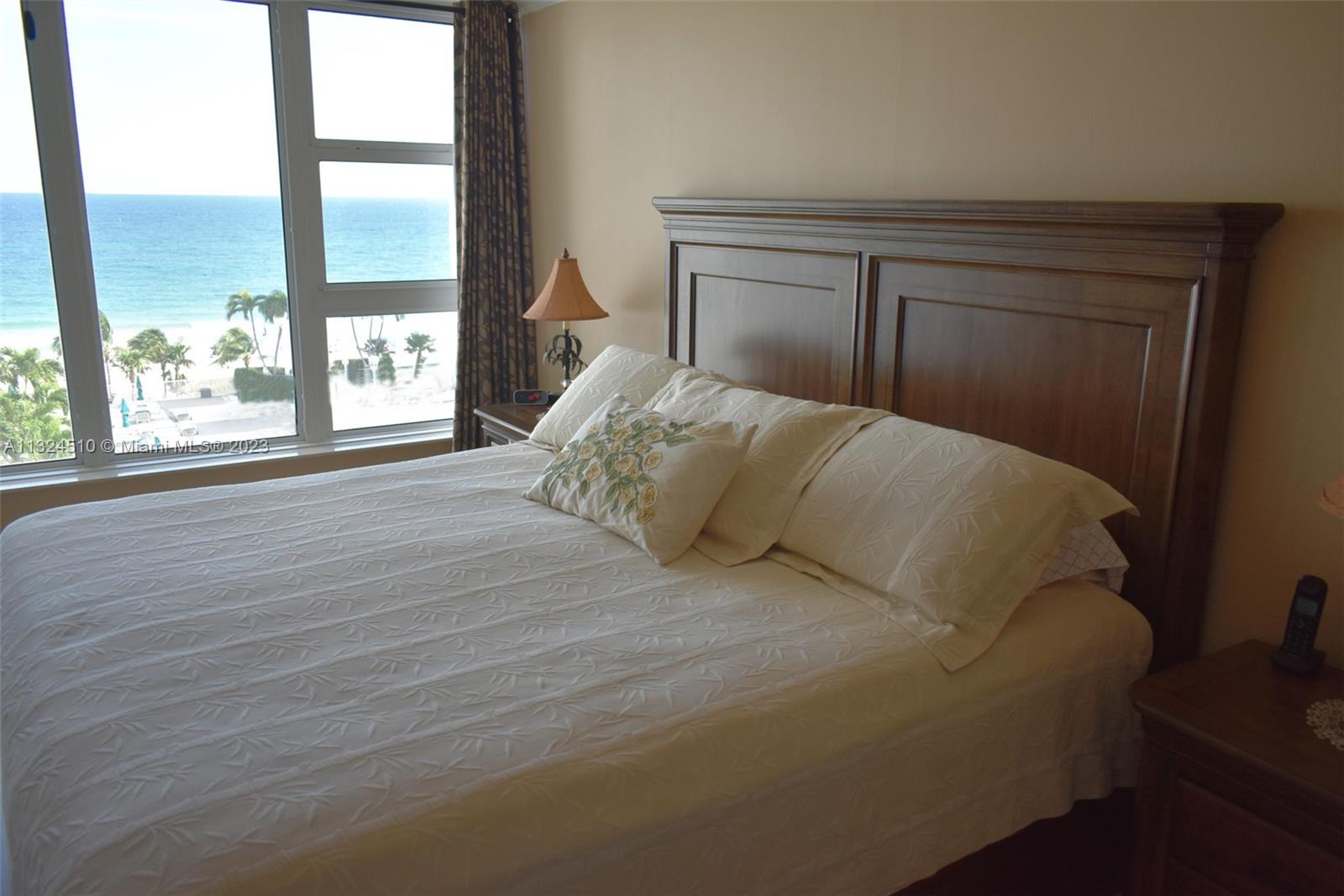 Offering 2 bed/2 ba unit with DIRECT OCEAN VIEWS and IMPACT WIMDOWS), in Lauderdale By The Sea. All windows offer views of waves, sailboats and departing cruise ships. The open kitchen design offers the “chef” a view of the ocean beyond. Stay secure with a gated entry and 24 hour guarded security, plus indoor parking in a dedicated spot. Ample free parking for your visitors is available. The washer and dryer are within the kitchen, hidden within its cabinet. Crown moldings and large diagonal ceramic tile floors throughout the unit. Amenities include large pool deck and heated pool, beach barbecues, free lounges on sand for sun bathing, barbecue area on pool deck, saunas, large ocean view party room with kitchen, card room, billiards, gym, and tennis courts. Furniture negotiable.