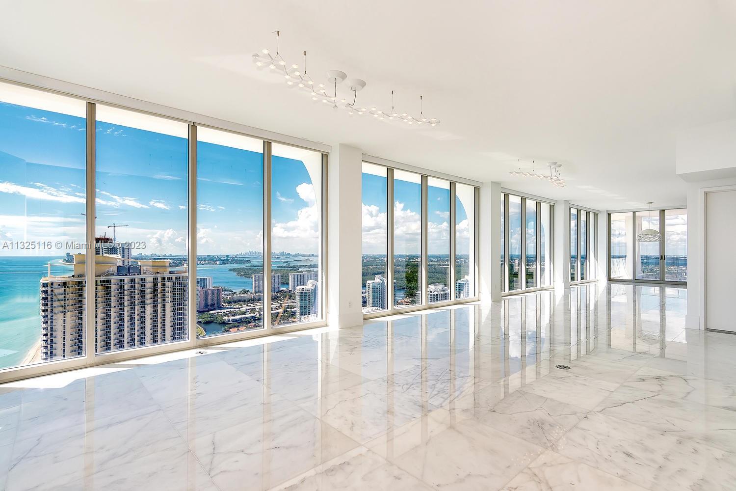 Best views and pure luxury in sunny Isles! Unobstructed and direct ocean front views and city views. Spacious apartment with 5 bedroom and 6.5 bathrooms. Master suite with his and her closets plus an spectacular view. Calacatta marble floor and beautiful furniture. Top of the line amenities include beach service, restaurant, spa, heated pool, child play area, gym, billiard, library and more. Best location in Sunny Isles!