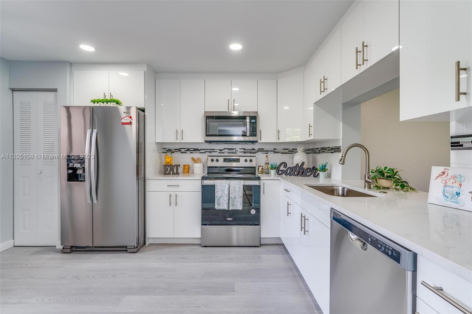 BRAND NEW AC!! Amazing, spacious & fully remodeled 2/2 condo in Pembroke Pines. This gorgeous & modern-style unit w/beautiful garden view will welcome you upon entering the front door. Features a modern brand new kitchen w/SS appliances, wood cabinets & quartz countertop. Large bedrooms, completely renovated bathrooms & walk-in closet in master bedroom. Brand new vinyl floors & LED lights throughout the unit. Freshly painted, washer & dryer inside the unit; assigned parking & plenty of guest parking. HOA is $544.55 includes water, cable, internet, w/endless amenities: a million-dollar clubhouse. Located in Buckingham East I at Century Village, one of Pembroke Pines’ most desirable active adult communities. 55+. Located next to the shop of Pembroke Gardens and major highways.
