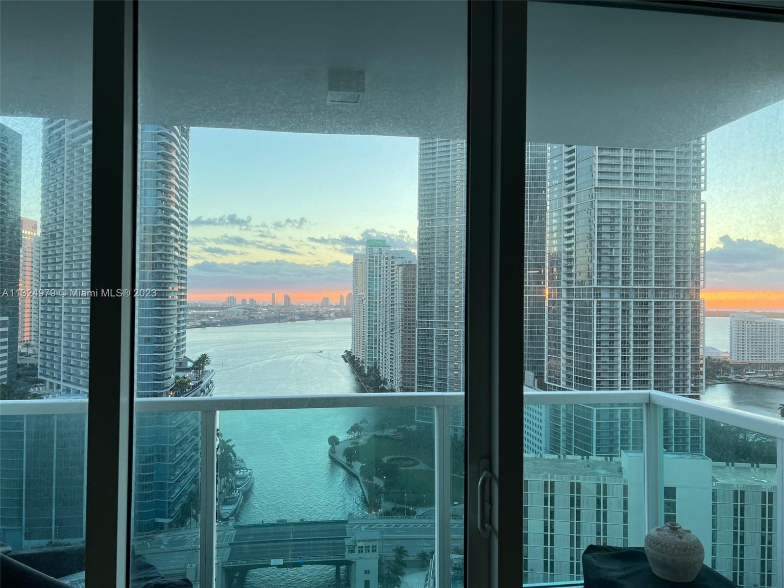 Spectacular view of the River and Bay! Corner unit filled with natural light, beautiful marble floors, many upgrades, open kitchen, spacious master bath, custom doors... Must see to appreciate! Furniture can be included in sale at no additional cost! 3 storages cages included. Waterfront building with boat dock for pick up & drop off, kayak, stand up and other water activities. Very well managed building with great amenities. Pets OK. OK to rent, minimum period 90 days. Fantastic investment and phenomenal location. Maintenance fee total $979.06/monthly (BOR North $652.80 + BOR Master $326.26)