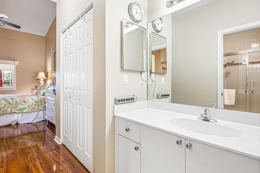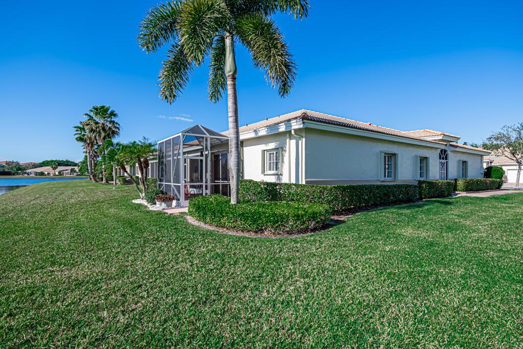Stunning home on the lake. This is one you can't pass up! 3 bedrooms, 2 full baths with a one car garage situated on a beautiful lake. Enjoy relaxing on your patio seeing the sunset. The double patio features an outside screened enclosure, outdoor BBQ area and an enclosed patio you can use all year round. This is an end unit which gives you more windows letting in a lot of natural light. Fabulous engineered hardwood in the primary and one of the guest bedrooms. Very clean home. Well maintained. AC 1 1/2 yrs, dishwasher, microwave 2 years, updated stove, refrigerator and hot water heater. Washer/Dryer have been enclosed and are not in the garage. Built ins in the closets and pull outs in the cabinets. Complete with accordion shutters. The clubhouse is fantastic! Resort feel with 3 pools