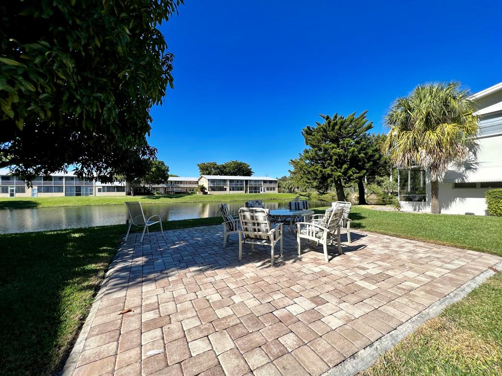 A terrific spot to call home in 55+ Century Village! WATER VIEW 2/1.5 condo in a fantastic location very close to the Hastings Fitness Center. Central AC. Neutral Tile flooring in living area. Newer appliances in the kitchen. Updated half bath. Enclosed lanai with peaceful water views. Water side patio for building residents. Sold AS IS and Furnished. Century Village is a 55+ community with so much to offer...
