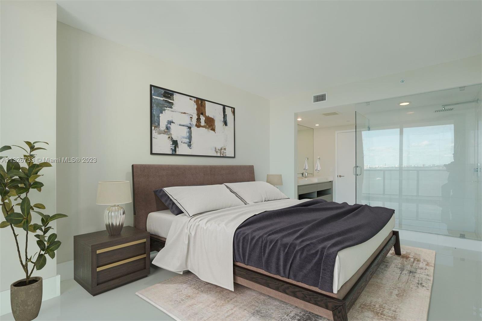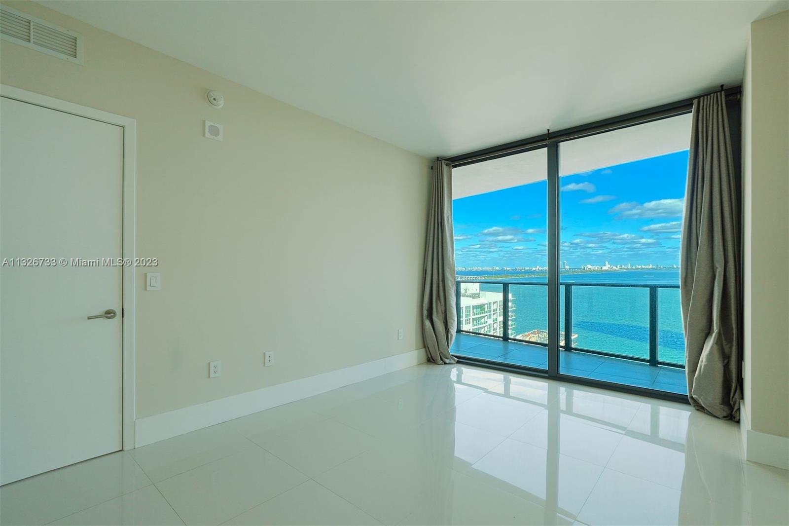 Breathtaking direct views of Biscayne Bay and Miami Beach. Impeccable 2 bed 2 baths, private elevator, Italian ceramic floors, island open kitchen and closet cabinets, floor-to-ceiling glass windows, very bright with large balcony. This unit features elevator direct from main lobby. Exclusive bayfront luxury building with state-of-the-art bayfront amenities, park, pool, gym, sauna, party room, tennis courts, valet & more. Perfect location near the Design district, Wynwood & Midtown restaurants & shops.