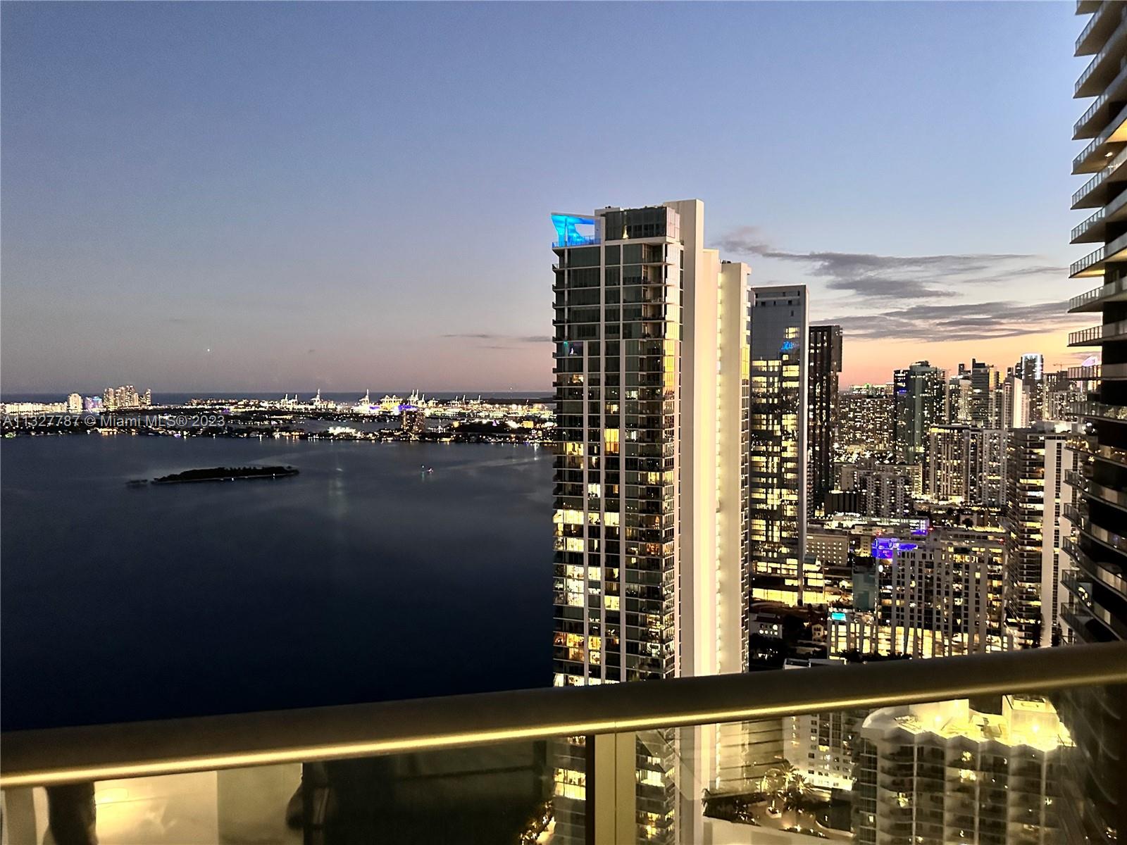 Best 2 BR offering in all Paraiso Bay Community: Over $80K of contemporary upgrades and renovations include recessed lighting with Iotty Italian Bluetooth controlled switches, wood/veneer wall finishes, new doors/fixtures, MBR sound inhibiting common wall, custom closets, sliding glass partition MBR Suite, built in bench storage 2nd BR, power/remote blinds and much more. Breathtaking unobstructed panoramic views from Biscayne Bay to the Atlantic, Miami Beach and Miami skyline! Master Assoc. amenities include resort 100' diameter pool, jacuzzi and towel service, indoor spa, gym, cigar and wine rooms, surround theatre, multiple kitchens indoor and out, multiple club, business and social lounges, bowling alleys/game room, Self Park + Valet services. Vacant upon closing. FURNISHED OPTION.