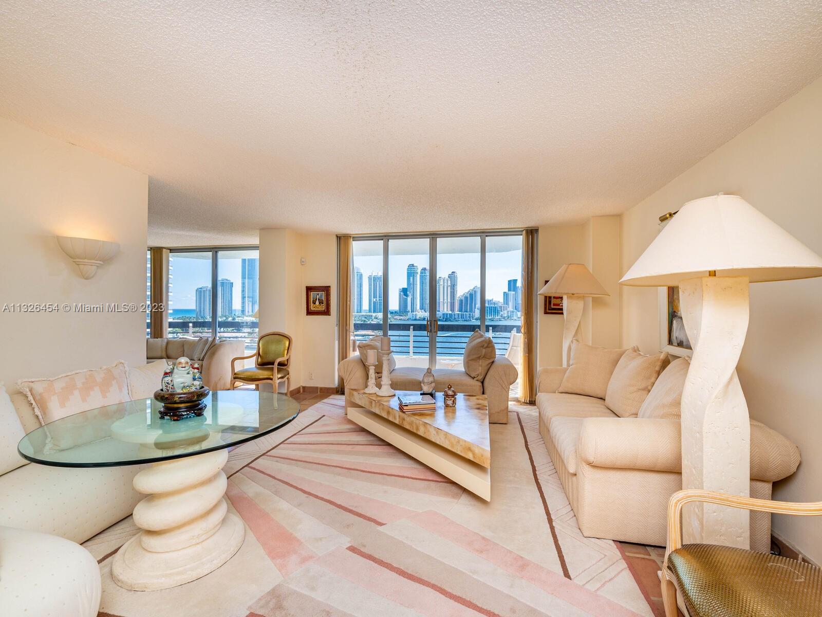 Large corner unit 2Bed/2Bath in the Prestigious Mystic Point with spectacular water views from every room. This unit offers an open floor plan, Wrap around balcony, Full-service building: Amenities include tennis courts, a pool & spa, two meeting & party rooms, a grocery store, valet, gym, marina concierge, lush ground with a walking path along the canal, shuttle stop, and much more. Mystic Pointe is located minutes from the Aventura Mall, Sunny Isles Beach, and walking distance from the house of worship. The exclusive Turnberry golf course is just minutes away. Great school district.