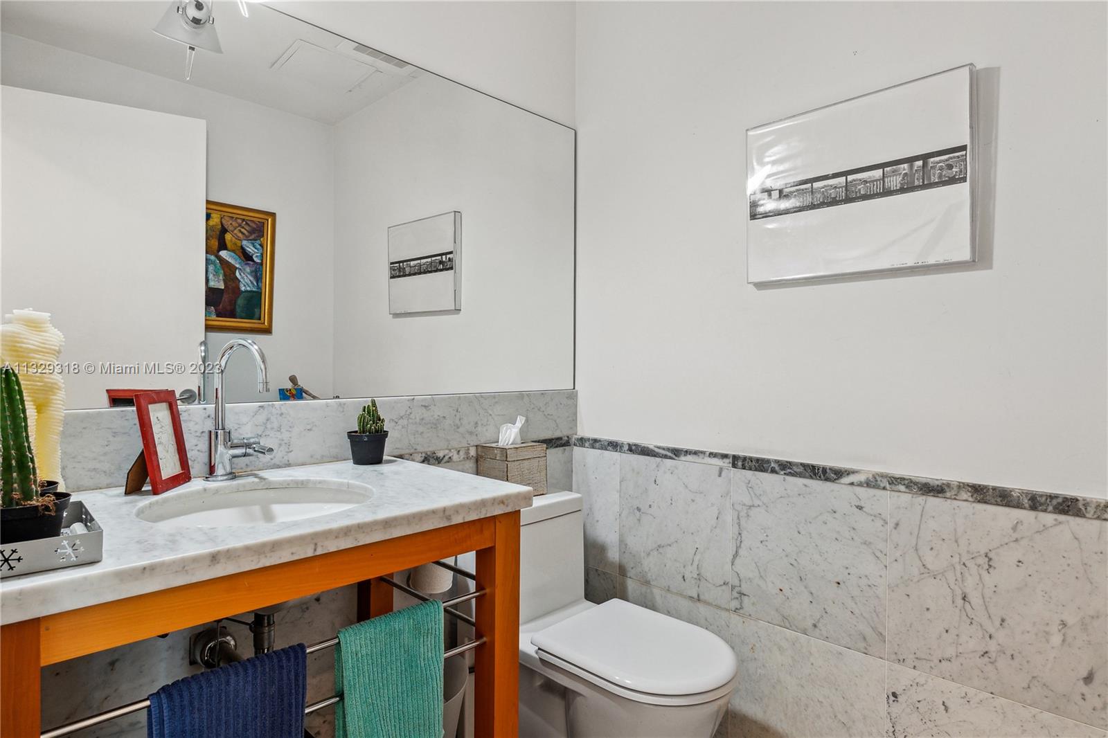 Incredible opportunity to live in a luxury waterfront community for a small portion of the price of other units. This XL 1-bedroom, 1.5 bathroom unit spans almost 1,400sqft and offers many updated features including polished concrete floors, floor-to-ceiling windows in the living/dining areas, a high-end kitchen and a very spacious primary bathroom. This is the only unit on this floor and it comes with two parking spaces. One block from the ocean, Aqua offers great amenities including two pools, a large fully-equipped gym, bbq area, concierge, security, a cafe, valet parking and more. Prime Miami Beach location close to the ocean, South Beach, Bal Harbour and the Miami International Airport. Great place to call home! Don't miss this one. *Some photos have been virtually staged.*