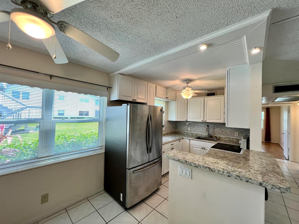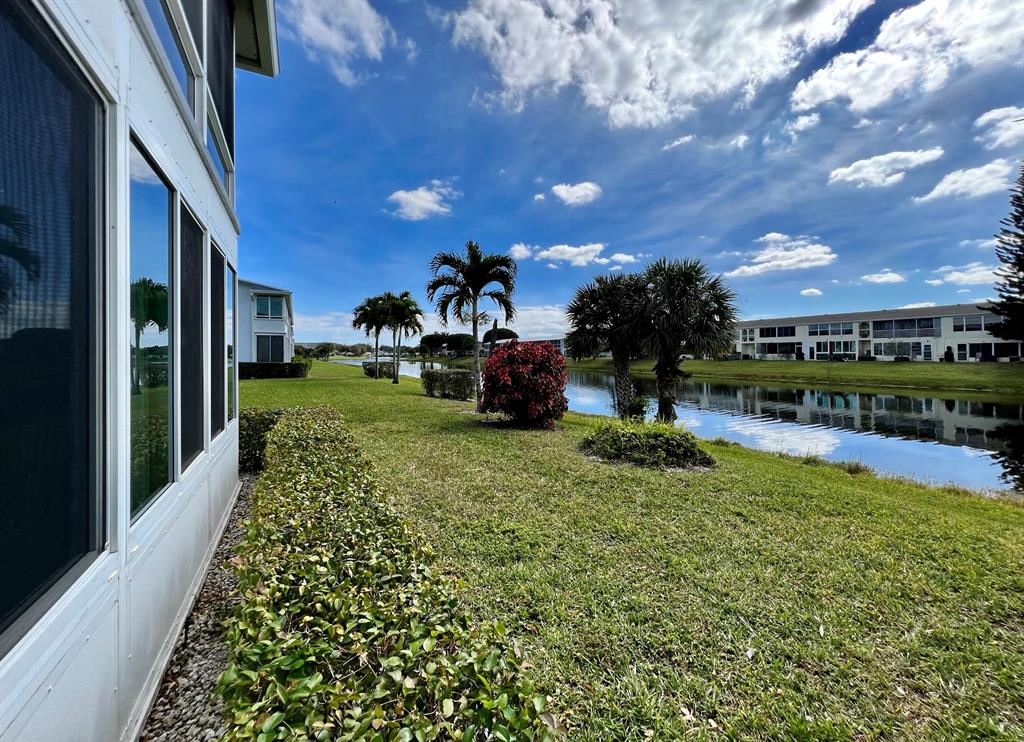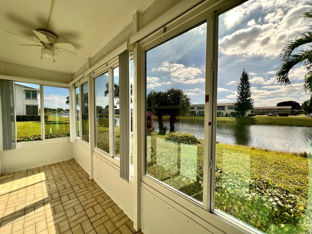 Spectacular waterfront 2/2 on desirable Chatham Isle in 55+ Century Village! Move-in ready FIRST FLOOR CORNER condo with beautiful views & updates. The kitchen features white cabinets and upgraded appliances including a dishwasher. Two updated full baths each with a step-in shower. Updated flooring, white tile in living areas and wood laminate in bedrooms. Impact windows and new front door. Updated & enclosed lanai provides attractive extra space with impact windows, white blinds, and ceiling fans. Central AC. Beautifully maintained building and financially sound association. Sold AS IS. Century Village is a 55+ community with so much to offer...