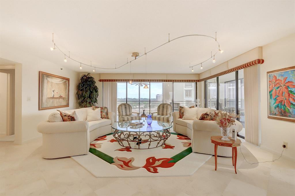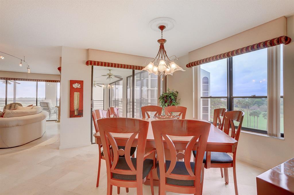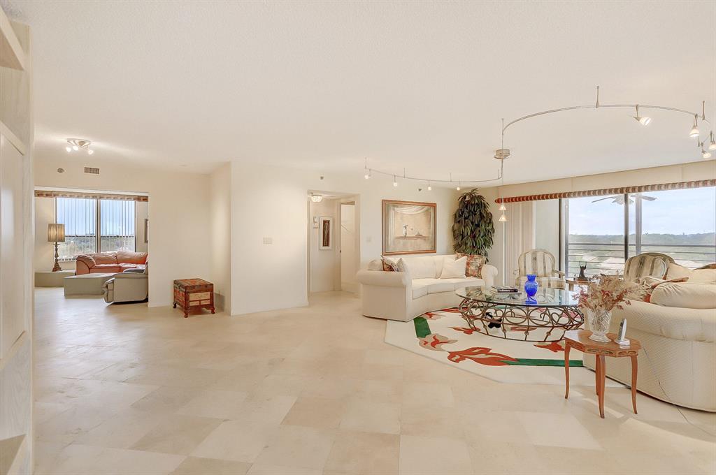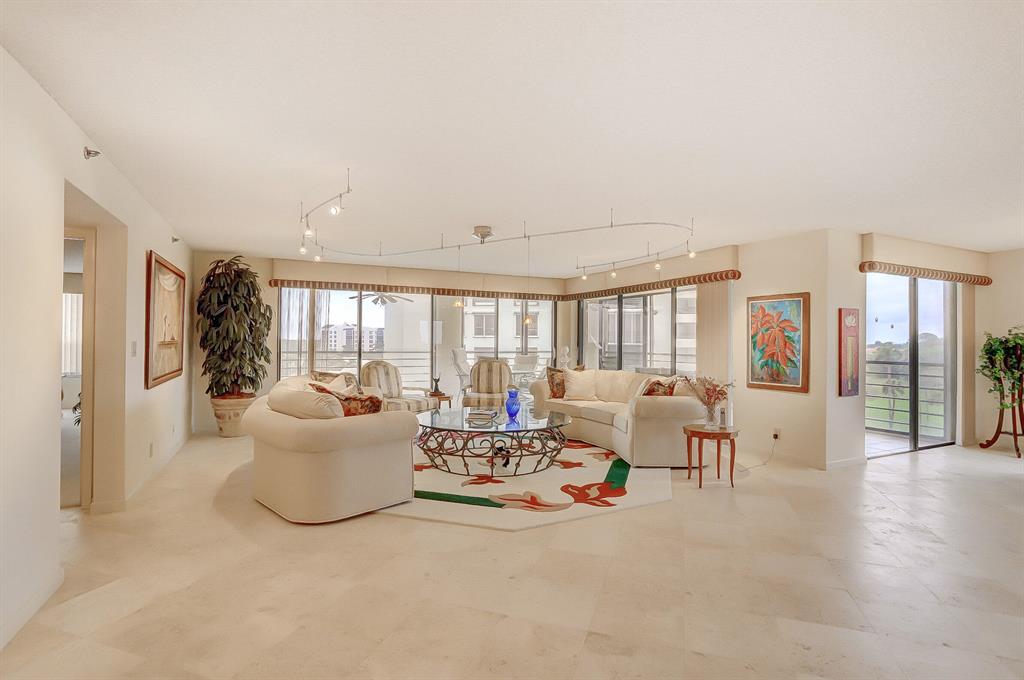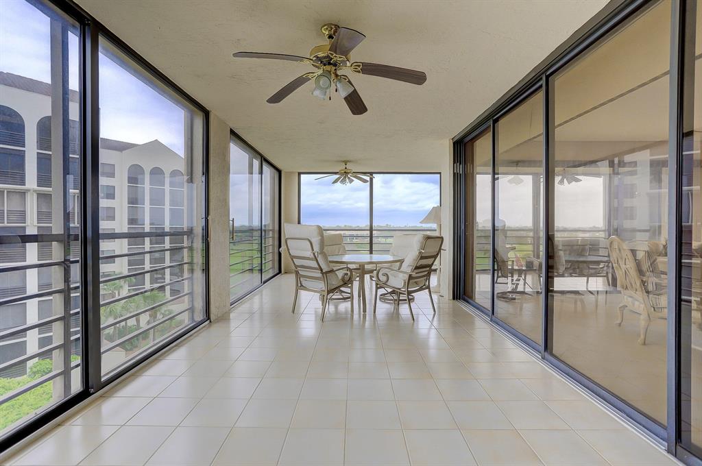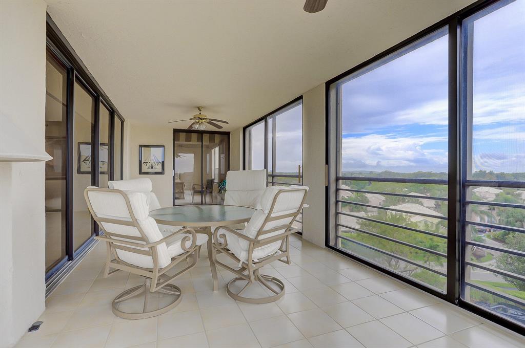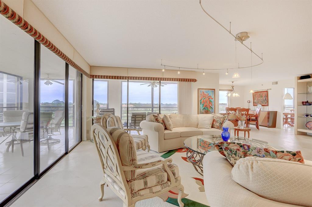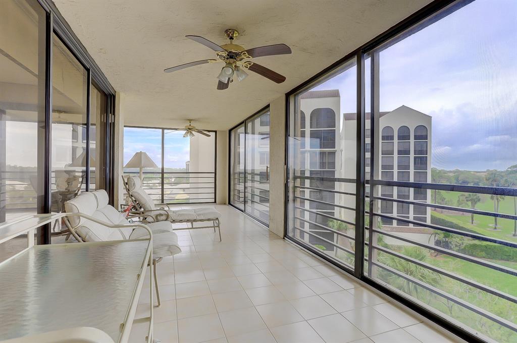 Enter this luxury 3/2.5 corner condo and be wowed by the gorgeous golf and wrap around views! This model is rarely available. Sold fully furnished for buyer to enjoy! FLA living at it's best. There is an extra office with desk off of the kitchen. Beautiful golf course views from glass enclosed 510 sq ft wrap around terrace. Kitchen also has beautiful lake and golf views. Saturnia Marble floors in living areas. Jacuzzi tub in master. Washer, Dryer, 2 air conditioners and water Heater replaced in 2021. Move right in and enjoy! Third bedroom is converted to a den. Only 2 apts to a floor. Walk to beautiful tropical community pool and pool area. You can also walk to The Club which is an optional CC with golf, tennis, fitness center, & pool.