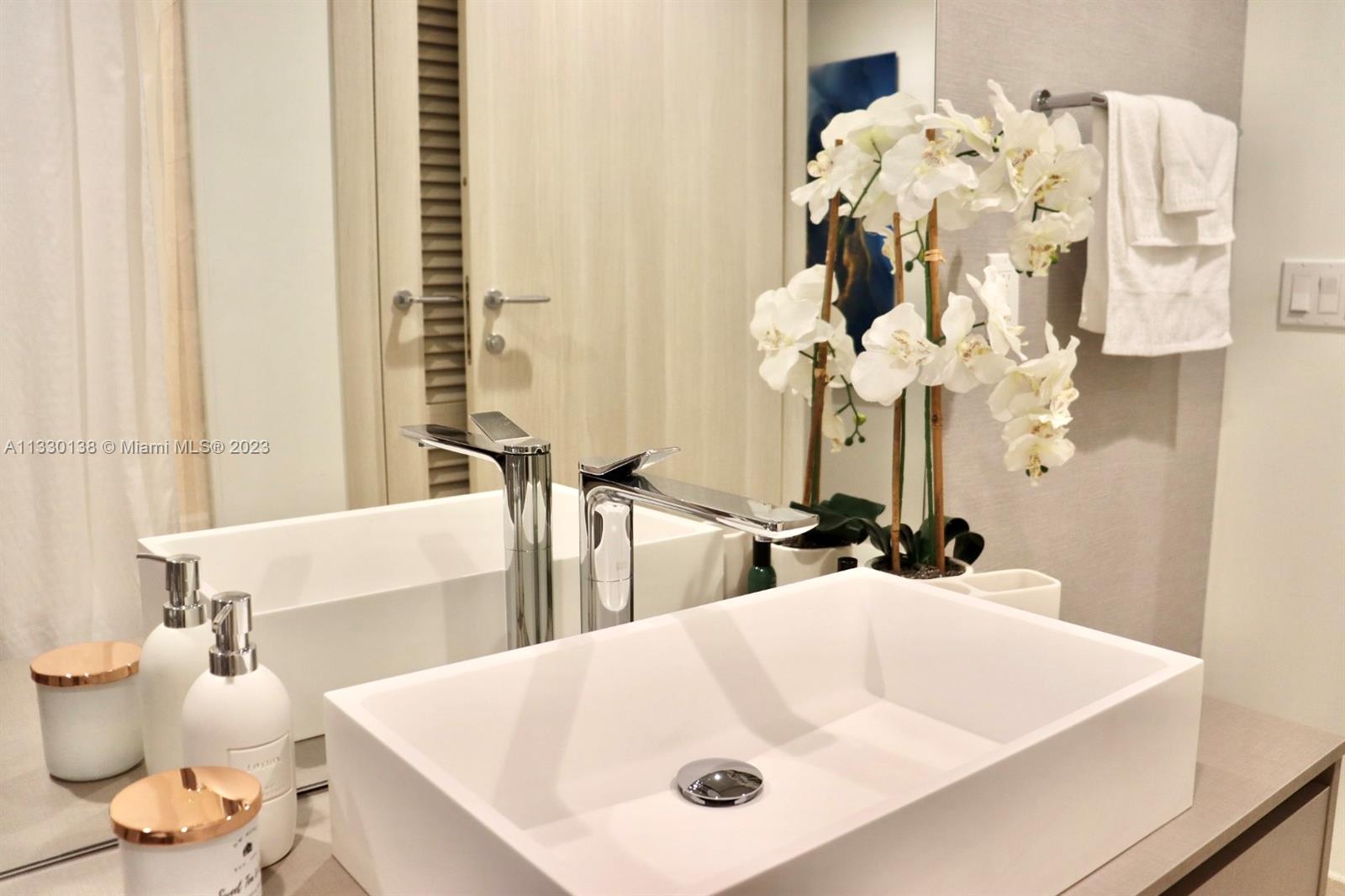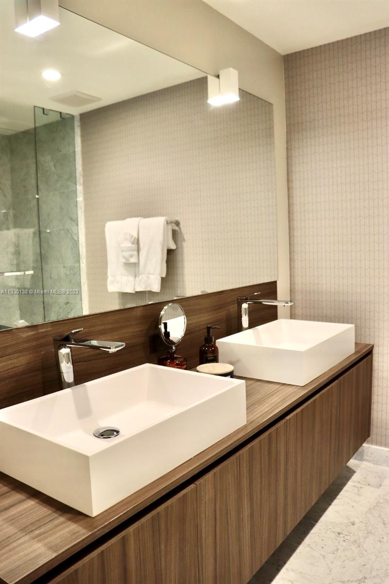 GORGEOUS FULLY FURNISHED UNIT 1 bed +1 DEN (Full Bedroom) w/2 full Baths. The kitchen features all Miele appliances & cooking island. Marble in baths, separate tub & shower; energy efficient impact resistant floor to ceiling windows and an enhanced insulation sound proofing between units; stunning views of the Miami’s skyline. Amenities include the 64th floor rooftop pool with a spa, Steam, sauna, and locker facilities and 6,300-square-foot gym with a Pilates, yoga, aerobics studio, and a juice bar. Includes a lap pool and children’s pool on the 18th floor, a movie theater, billiards room, and electric car charging stations. Concierge.