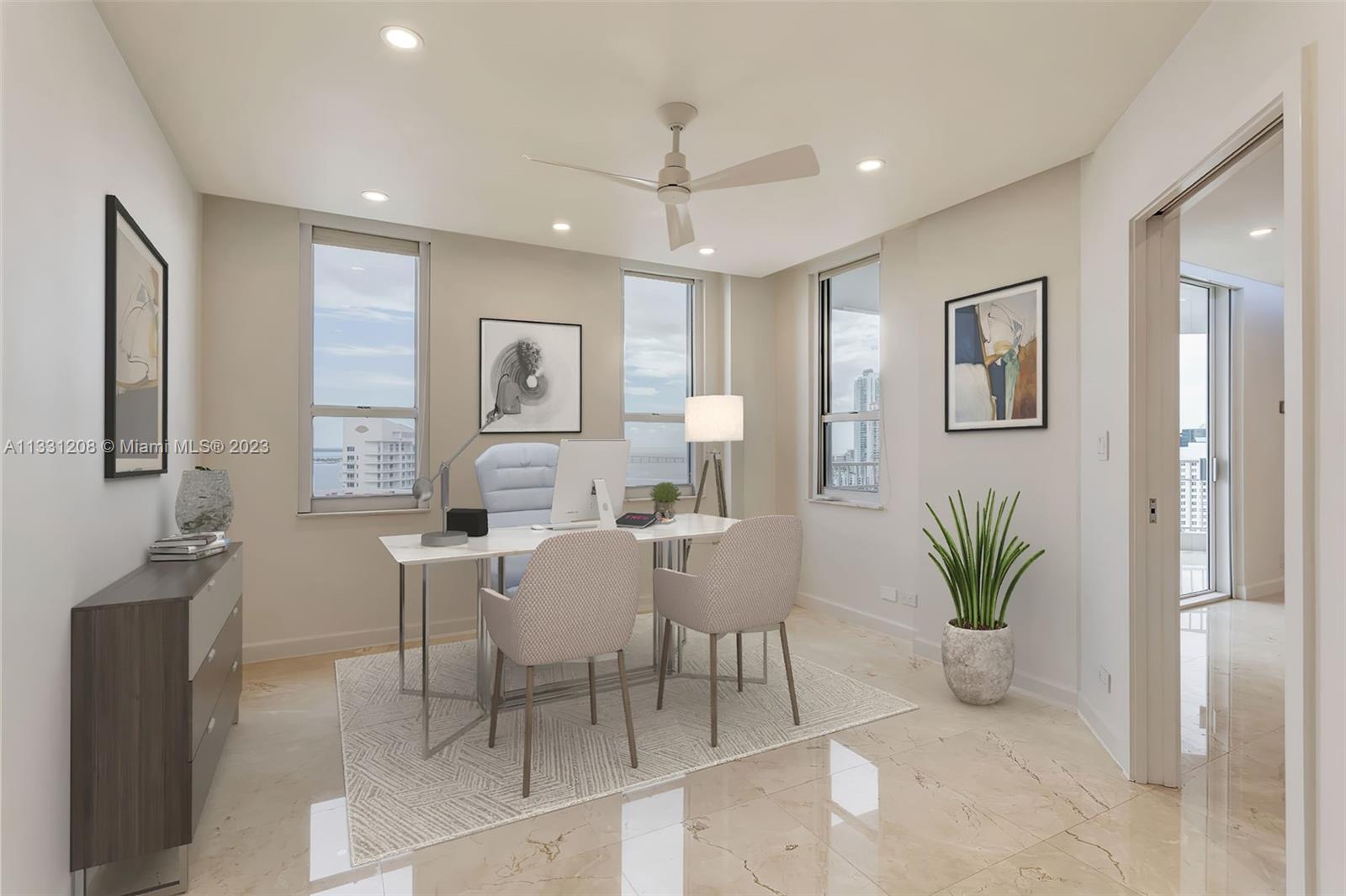 EXQUISITE APARTMENT! Views to die for and five star living. Welcome to this turn-key bright, tastefully renovated 3 bed/3 bath apartment. Open kitchen w/ Monogram induction cooktop & GE Café line appliances, including induction oven & microwave, functional & inviting bar area, marble floors, dimmable inlaid led lights, surrounding ambient lighting(color/white). It boasts spectacular unobstructed ocean views from wrap around wide balcony. 3 parking spaces (2 assigned) & 3 storage spaces. Located on Brickell Key with bay pool, 2 level gym, sauna, BBQ, squash, Conference Room, Pool Room, Computer Room, Concierge, Package receiving area, Bike Room, direct access to jogging/path loop and valet parking. Pet friendly building. Walking distance to Brickell City Center, restaurants, & so much more!