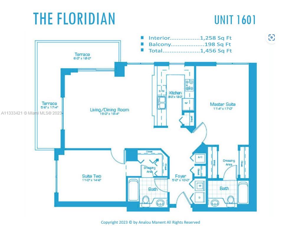 Spectacular Views from this impeccable Condo, best line at The Floridian. Completely Upgraded with Italian Tiles throughout, open Kitchen, and an abundance of light. 2 Beds 2 Baths, and large Balcony. Designed by French Designer Marie W. Wraparound terrace. Enjoy Floridian's many amenities including 24-hour front desk/security, 2 swimming pools, a gym, sauna, tennis court, basketball court, BBQ area.
