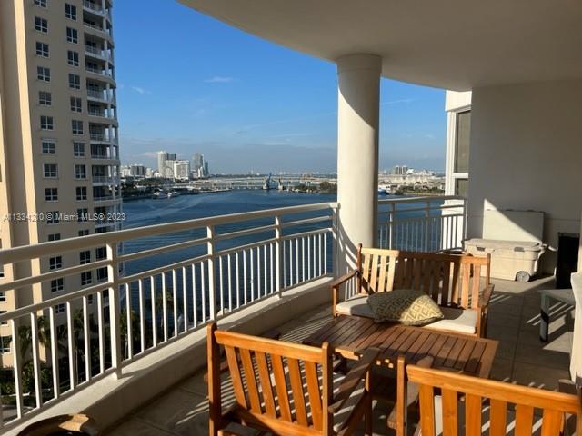 One of the largest two bedroom units at Two Tequesta, huge patio with spectacular views of the bay, city, and the river. You can enjoy fireworks on New Year's Eve from the balcony. Dining area, kitchen with breakfast area and walking closets. Great move in condition. Building has great amenities such as tennis, excellent gym with cross-fit, indoor basketball, squash, massage room, kids room, party room, card room, conference room. Easy to show