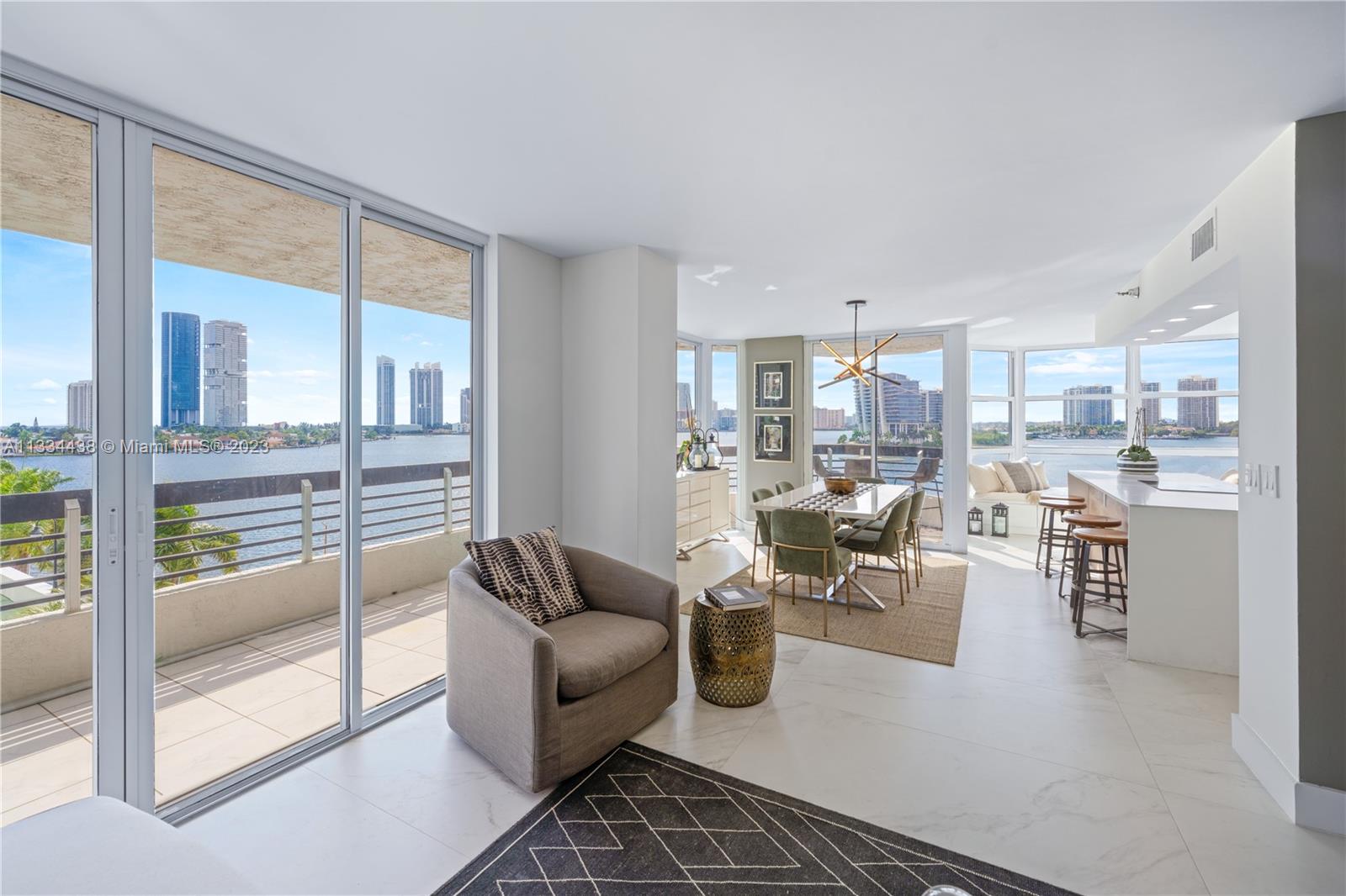 This 3 beds/3 baths, with 2 being Master Bedrooms on opposite sides of the property, fully remodeled with the most luxurious finishings that along with its custom made kitchen and bathroom cabinets and closets will get you to live the true Miami Experience. Decorated by a very prestigious Interior Designer This is the gem of Aventura. The best thing this property has to offer it's the incredible Million Dollar View, which is a total experience. It feels like you are on a boat all day surrounded by water and since it faces towards the intracoastal, and the fact that it has its own Marina, you get a show of boats every day of the year. Take the Tour!! Watch the Video on our Youtube Channel HouseofLion7