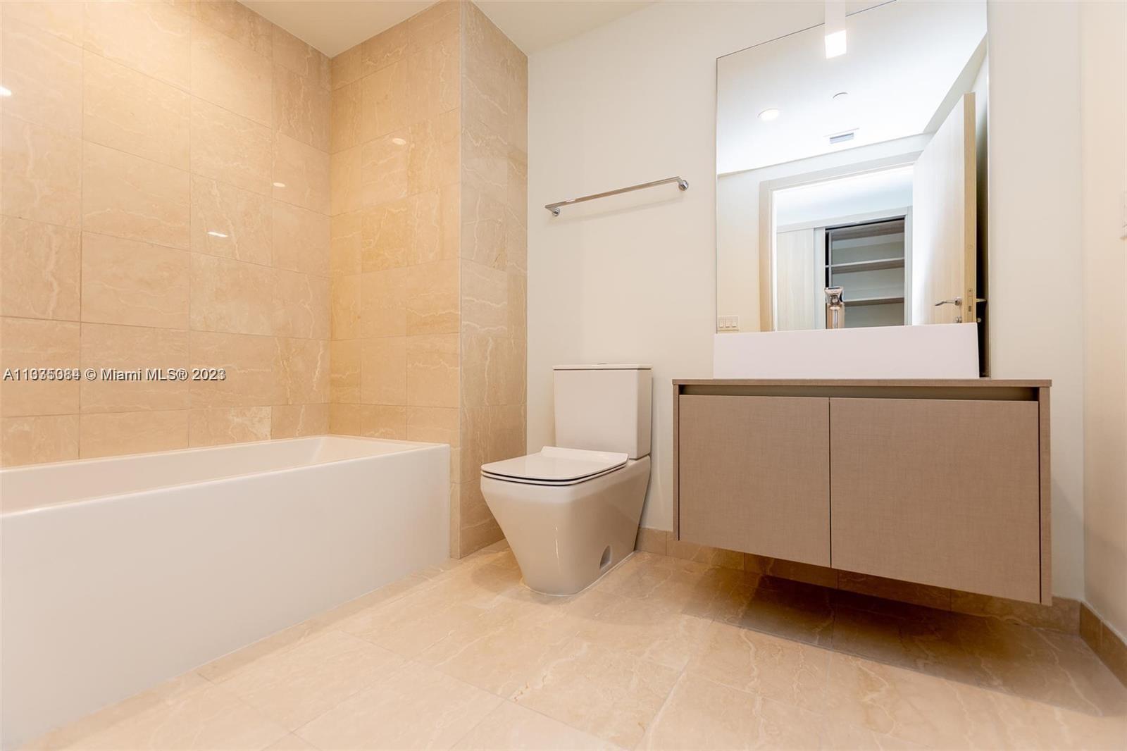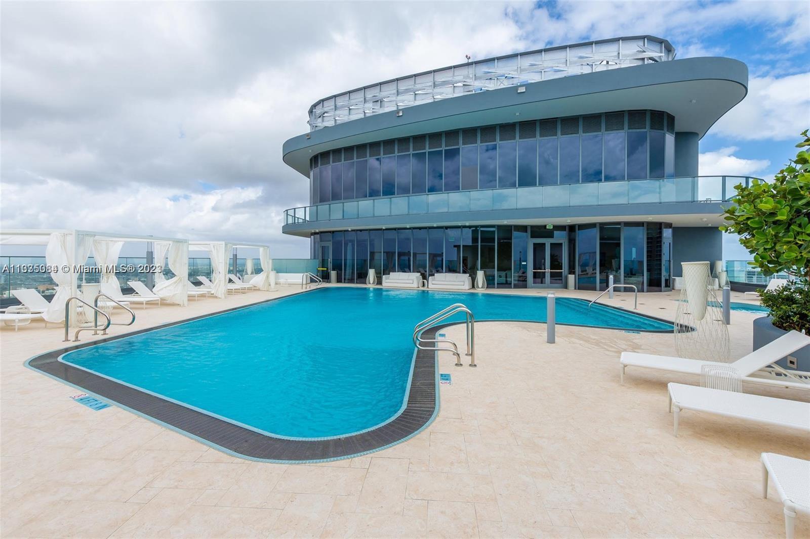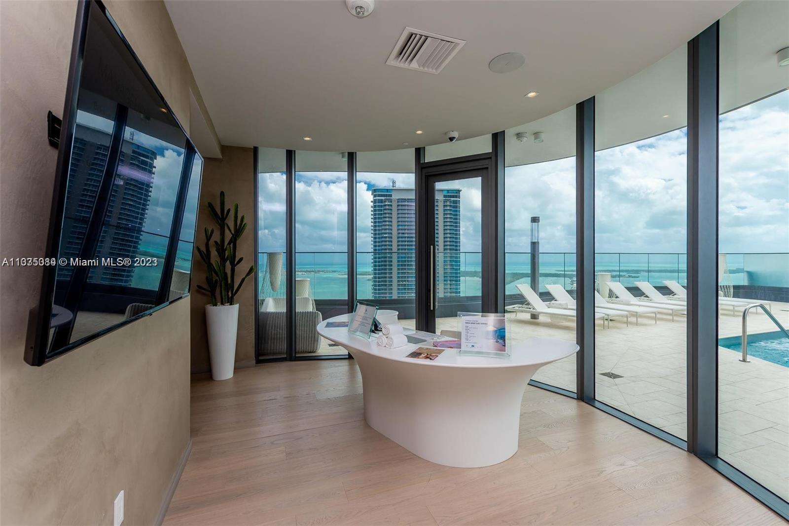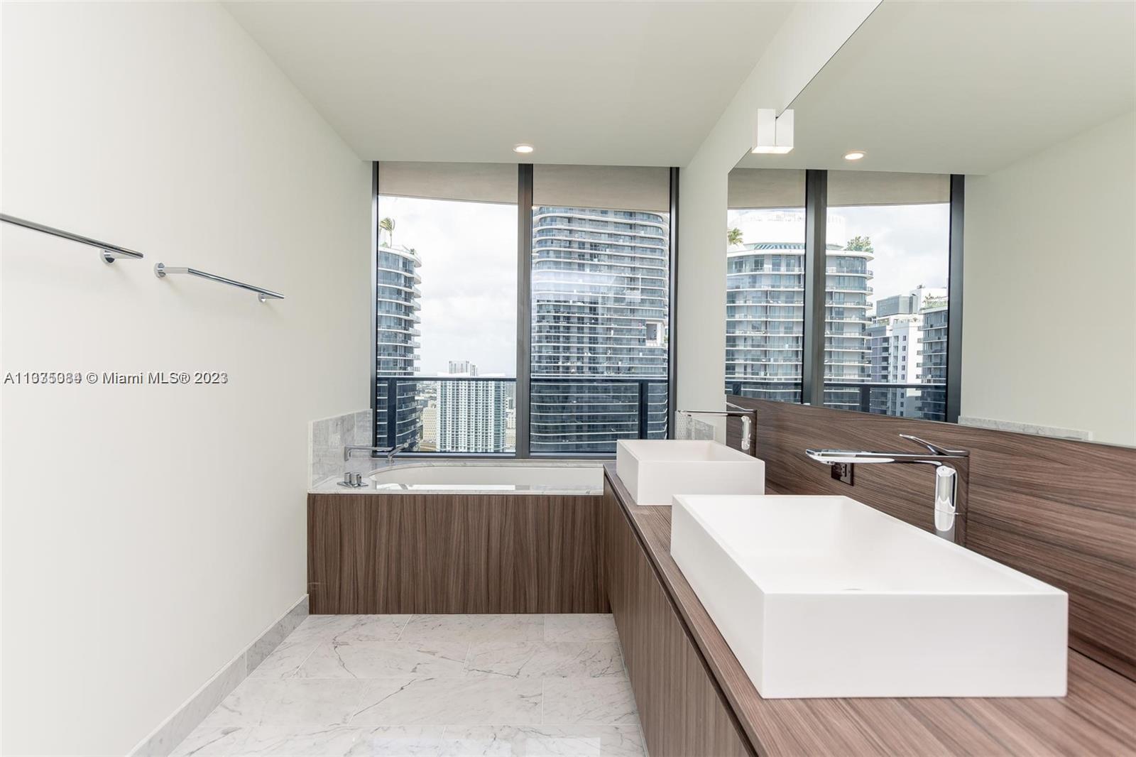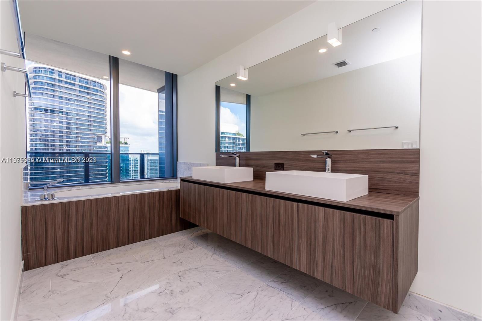 Sophisticated & modern 2 bedroom and 2 ½ bath apartment with Den, corner unit at the exclusive Flatiron with a stunning City and Bay view. This residence features tile throughout the unit including the terrace. The contemporary style kitchen with Italian made cabinets and german-brand “Miele" appliances makes the kitchen in this unit a place to be. Italian made doors throughout and the awesome, beautifully designed Nest thermostat to help you feel comfortable and save energy. Custom closet and motorize shades.Flatiron features state of the art amenities such as a rooftop pool located on the 64th-floor offering 360-degree, impressive unobstructed water and city views...AMAZING UNIT!!