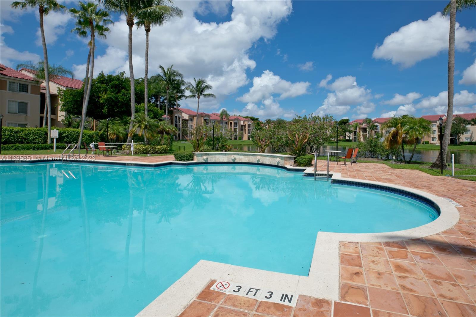 This magnificent corner unit is located in a great spot with a stunning view of the lake and complex pool. A perfect way to start the day! The unit offers a spacious living area with lots of natural light and plenty of room due to its vaulted ceiling. The unit also features two good size bedrooms and two full bathrooms. Tile flooring throughout. The balcony off the living room provides a great place to relax and enjoy the stunning views of the lake and pool. This unit is ideally situated in a great location and will provide its owner with a comfortable and enjoyable lifestyle. Furniture may be negotiable under a separate agreement.