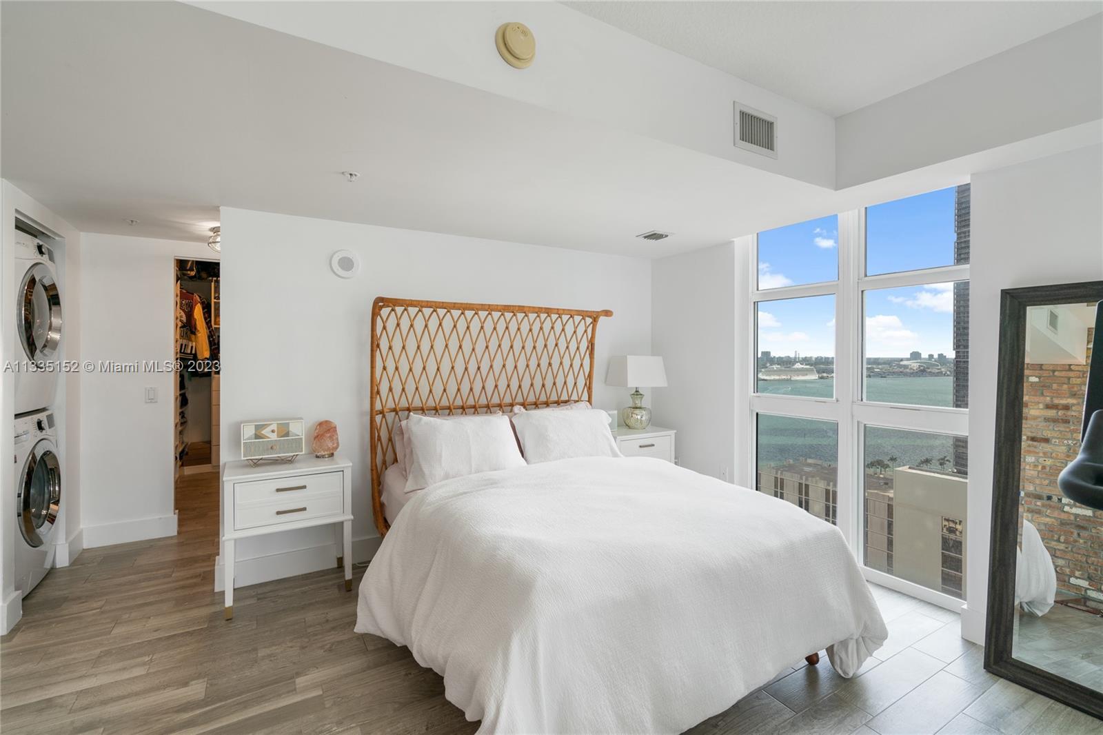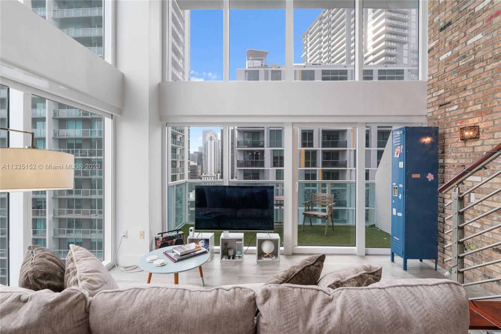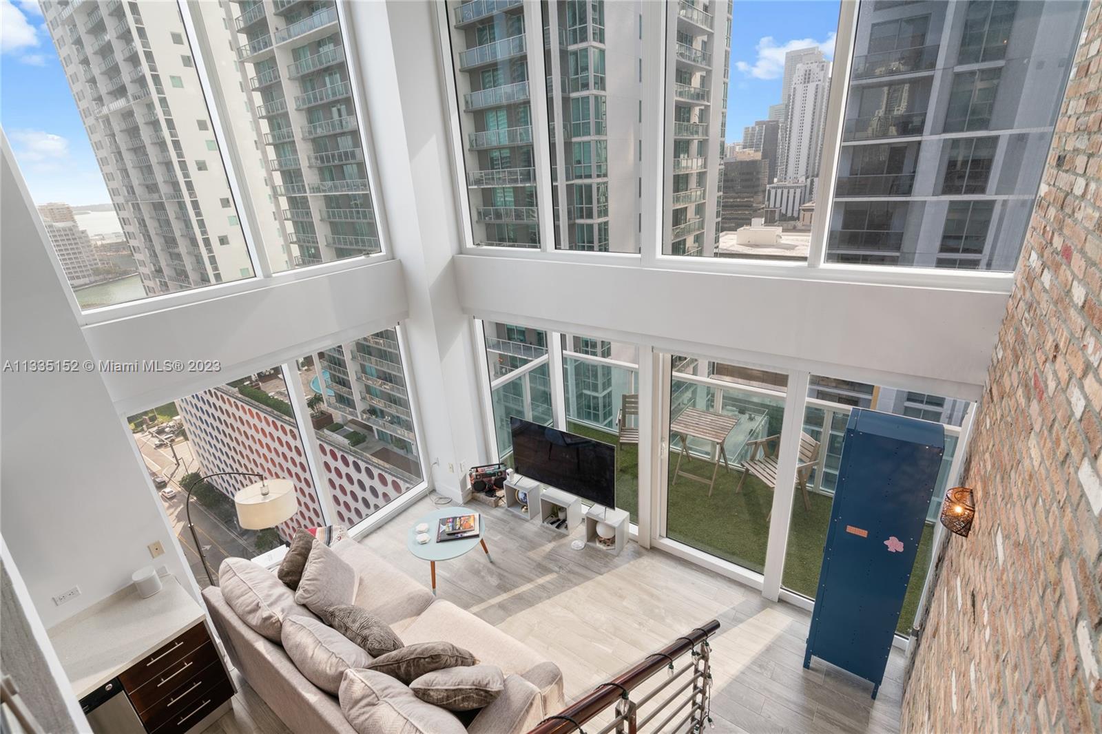 Beautifully renovated 2/2 loft style condo w/ double high ceilings (lots of natural light) & an industrial style exposed brick wall that gives the space a unique NYC loft style feel. Opened master bedroom on 2nd level w/ built out master walk-in closet. Modern kitchen, stainless steel appliances, new granite countertops, faux wood porcelain tile throughout, freshly painted walls, electrical powered black out shades & 2 balconies. Full service amenities includes gym, spa, 2 pools, party & game room, biz center, riverfront walkway, 24hr security & 24hr front desk + valet. This unit includes 1 parking spot & valet.  Pet friendly. Conveniently located next to the Metro people mover & very close to I95 for easy access in/out of Brickell. INVESTORS - short term rentals allowed (no restrictions)