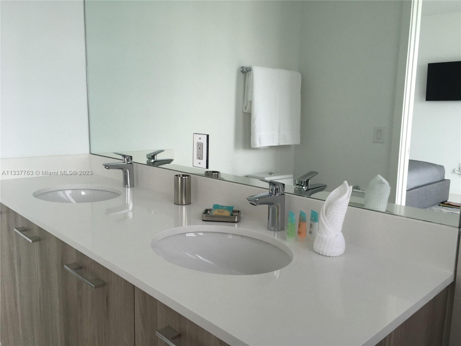 WONDERFUL 2 BEDROOMS AND 2 BATHROOMS WITH SPECTACULAR CITY AND SUNSET VIEWS. ALL-THRU WHITE CERAMIC FLOORS. GORGEOUS SPLIT PLAN WITH SPACIOUS LIVING AREA AND BEDROOMS. WALK IN CLOSET IN THE MASTER BEDROOM AND 2 BUILT-IN CLOSETS IN THE SECOND BEDROOM. WASHER AND DRYER IN UNIT. MASTER SUITE WITH LARGE BATH-TUB/SHOWER OVERLOOKING THE CITY. SECOND BATH-ROOM WITH GLASS ENCLOSED SHOWER. ITALIAN DESIGN KITCHEN WITH BOSCH APPLIANCES. FULL SERVICED BUILDING FEATURING ROOFTOP POOL AT 46TH FLOOR WITH HEART-BREAKING VIEW OF THE BAY, THE CITY AND THE SUNSET, SECOND POOL AT 5TH FLOOR, SPA AND SAUNA, STATE OF THE ART GYM, KIDS ROOM, SOCIAL ROOM WITH BILLIARD AND PROJECTION TV SCREEN. MANAGEMENT AND VALET ON SITE. 1 ASSIGNED PARKING SPACE.