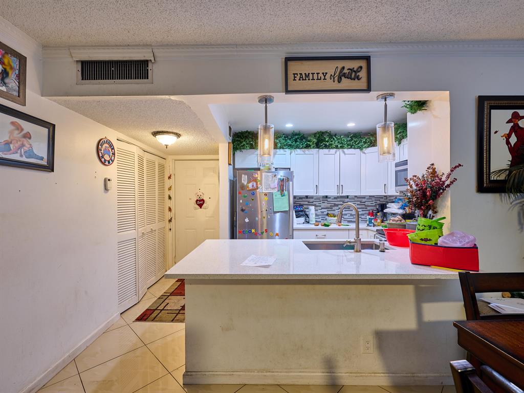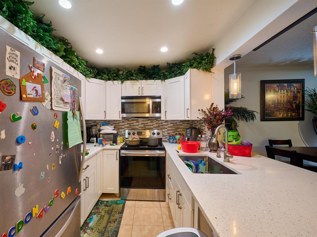 Dream Home in Coral Springs! Enjoy modern living in this updated condo situated in Ramblewood East community. Step inside and discover an optimal, open floor plan. The kitchen is a showstopper with stainless steel appliances, quartz countertops, white shaker cabinets and oversized peninsula providing chef's counter seating. Tile flooring throughout the unit offers clean lines and style. This end unit condo is has extra windows to provide additional natural light to all rooms. Enjoy having private in-unit laundry. Ramblewood East offers amenities including a pool, gym, clubhouse, spa, sauna, and tennis courts. Schedule your viewing today and make this home yours!