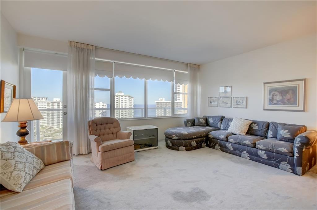 STUNNING DIRECT OCEAN VIEWS in this top floor penthouse large one bed/one bath. New roof was just completed along with major multi-million $$ building upgrades. All building work is paid for and fully funded reserves. Original Mid-Century modern design with the Kitchen and bath both CLEAN and in good condition. Best deal in all of Broward County to be this close to the beach with full amenities!! 24 hour security, year round heated pool, bocci ball court, separate clubhouse on the Intracoastal. A 5 acre oasis in the middle of walking distance to everything - restaurants, retail, grocery, entertainment, golf, boating. 55+ community. Cable TV & internet included in $677 monthly maintenance. Come enjoy the good life.