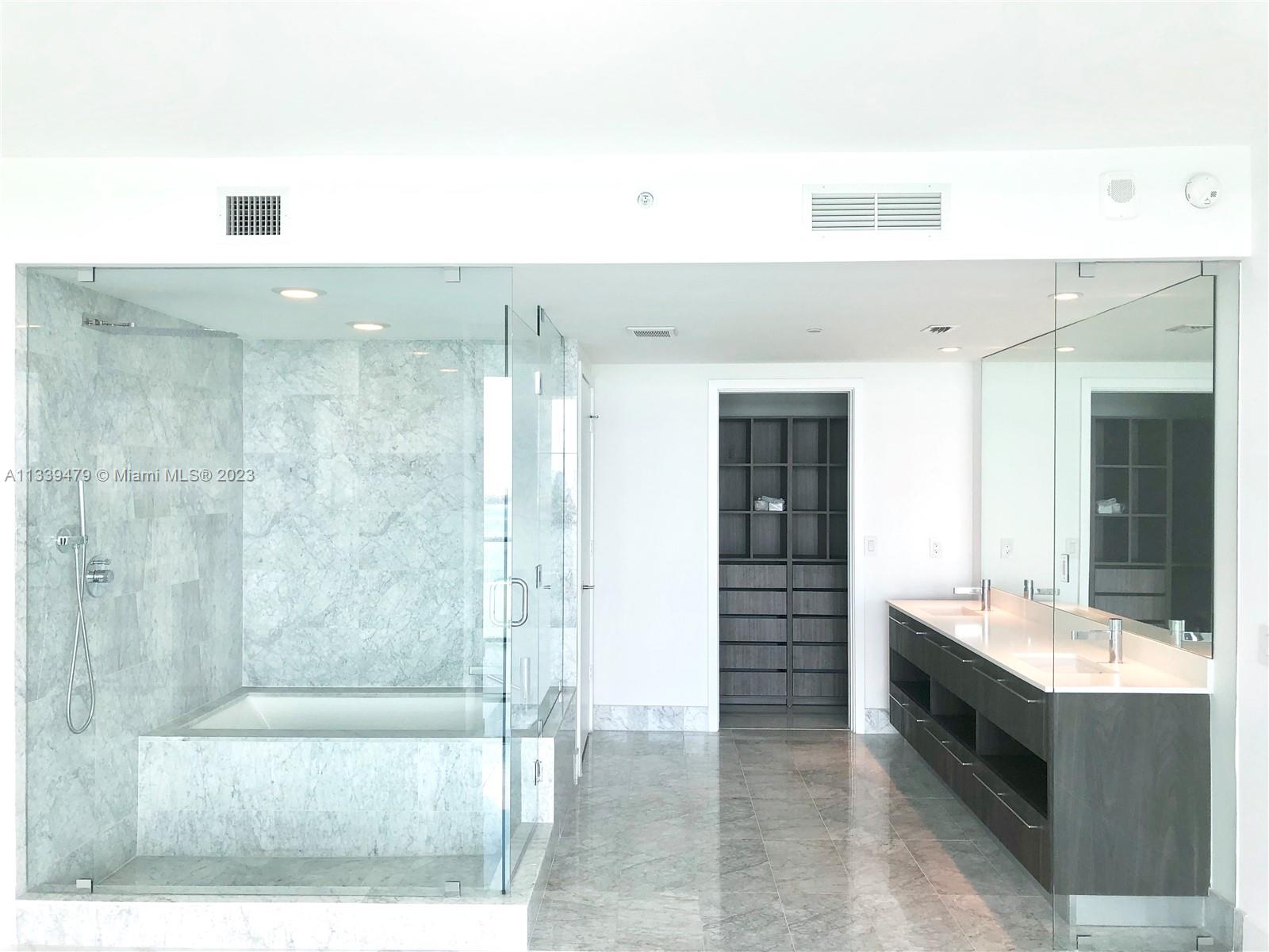 Stunning 2-bed/2-bath unit with private elevator and foyer. Finished with top-of-the-line white calacatta marble flooring throughout (the balcony included). Electrical shades and blackouts. Imported Italian closets in both bedrooms. Not a dime saved on lighting fixtures. The ocean view of the unit is breathtaking and unobstructed from its enormous balcony. The Paraiso complex offers a 3-acre resort deck with a heated swimming pool, outdoor spa, poolside cabanas, summer kitchen, jogging circuit and beautifully landscaped sun terrace. Residents enjoy a clubroom with billiards, fitness center, health spa with steam and sauna facilities, private screening room, wine cellar, cigar lounge, and a bayfront beach club and marina