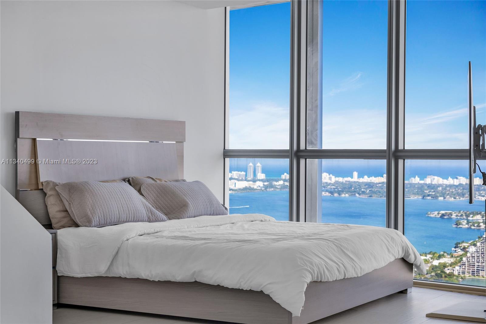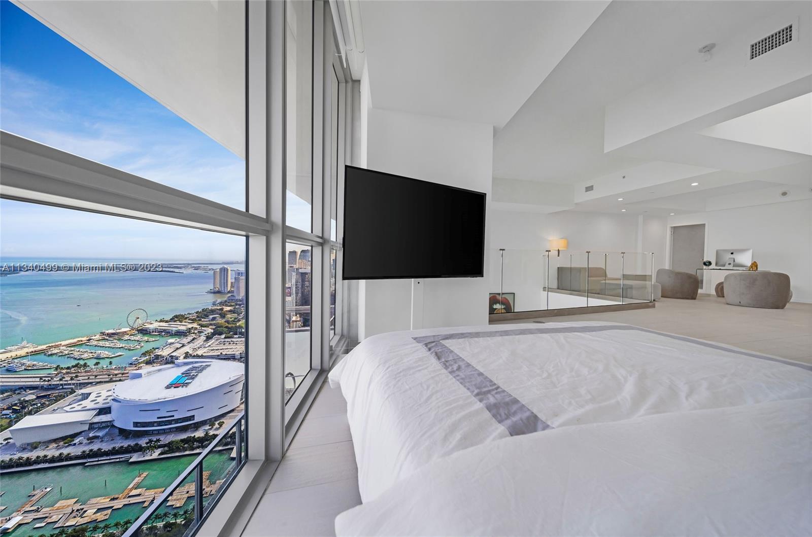 This stunning tri-level, 3 bedrooms / 2.5 baths PH in iconic Marquis is the ultimate Miami house in the skies. 650 feet above the ground, conveniently located in the heart of Downtown Miami across the street from The Miami-Dade (Miami Heat) Arena, The Perez Museum and Frost Museum. A short walk will take you to the Brightline station and a brand new Miami Worldcenter. The condo features soaring 20' ceilings, 2888 sqft under AC and a one of a kind rooftop sky lounge with your own private dipping pool/jacuzzi. The unit comes fully furnished with an upgraded kitchen featuring Wolf and Subzero appliances, waterfall marble island and unlimited, unobstructed ocean & city views. Endless storage space plus an additional storage in the building. Make this absolute dream condo your reality.