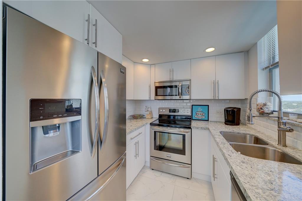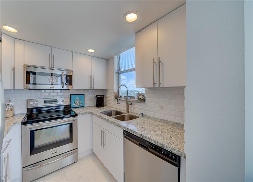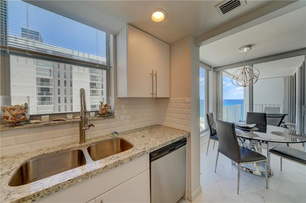 Impeccably remodeled unit ON THE BEACH in the best oceanfront building in Pompano. Fantastic split bedroom layout takes advantage of every single square foot. Spacious bedrooms, large closets, continuous marble tile throughout. No other building on the beach beats all these amenities! In-Unit full sized Washer/Dryer. Low HOA, 1 assigned in-garage space, ample guest parking, 24/7 security, fully staffed self-managed building, concierge service M-F 9a-5p, high speed internet, premium cable, car wash area, BBQ, pool, hot tub, sauna, oceanfront clubhouse w/kitchen, billiards, ping pong, bocce, bike parking. Financially solid, well managed building. Rentals OK after 1st year then 2X/yr 60day min. Furniture negotiable, art/electronics not included. Showings begin 2/15