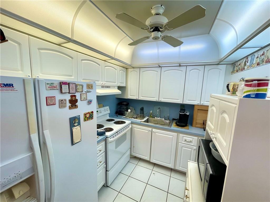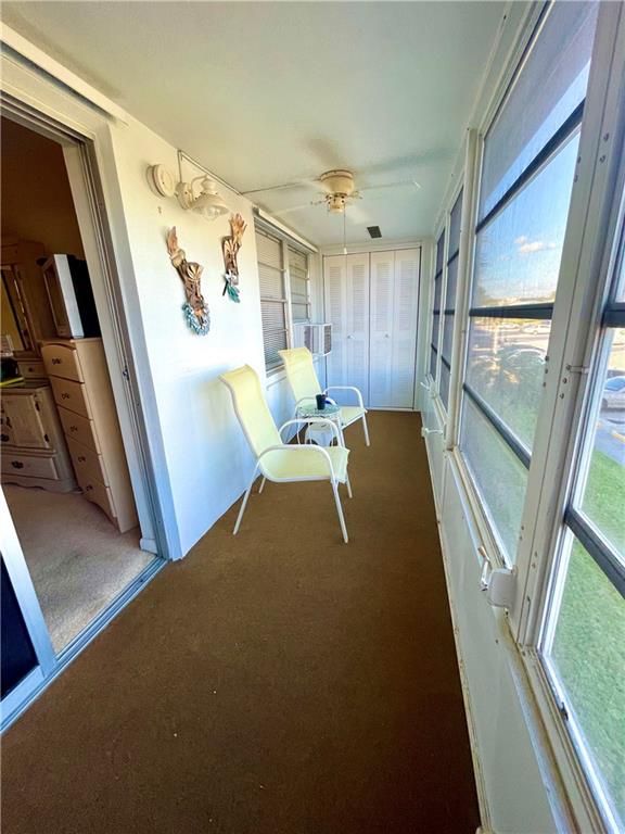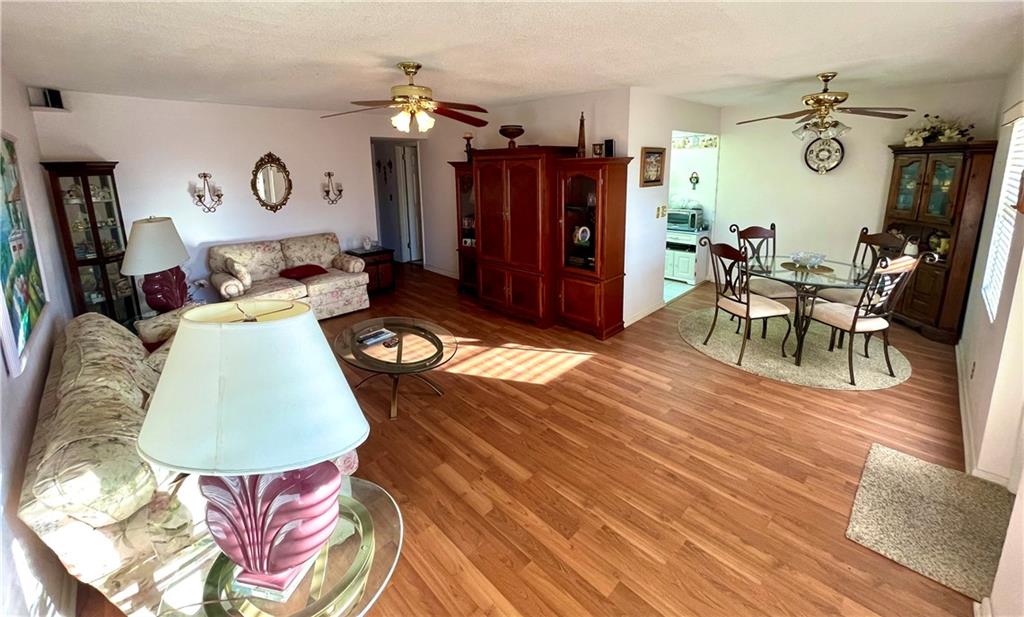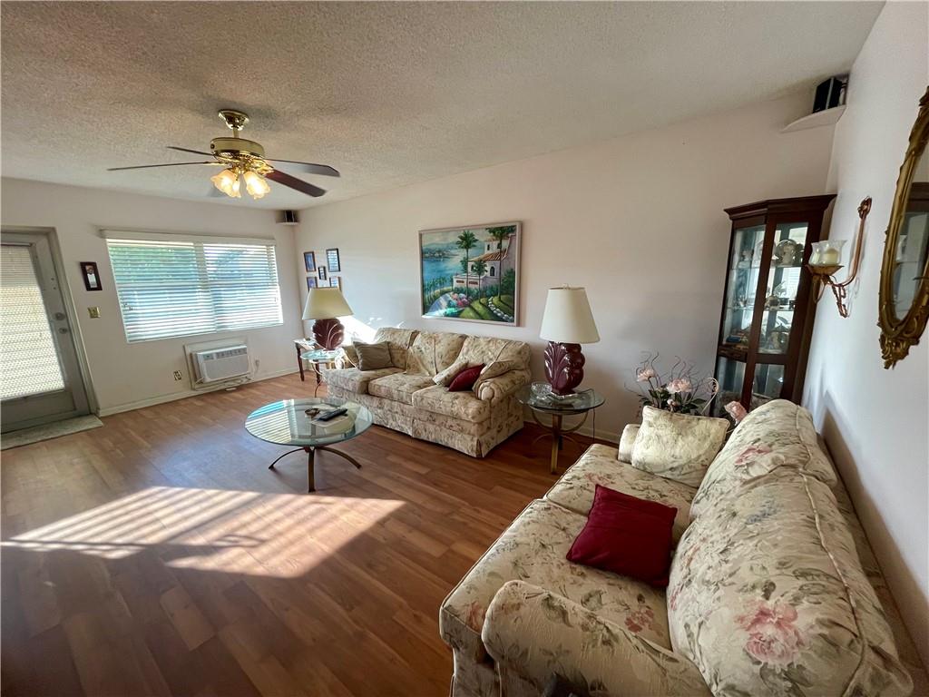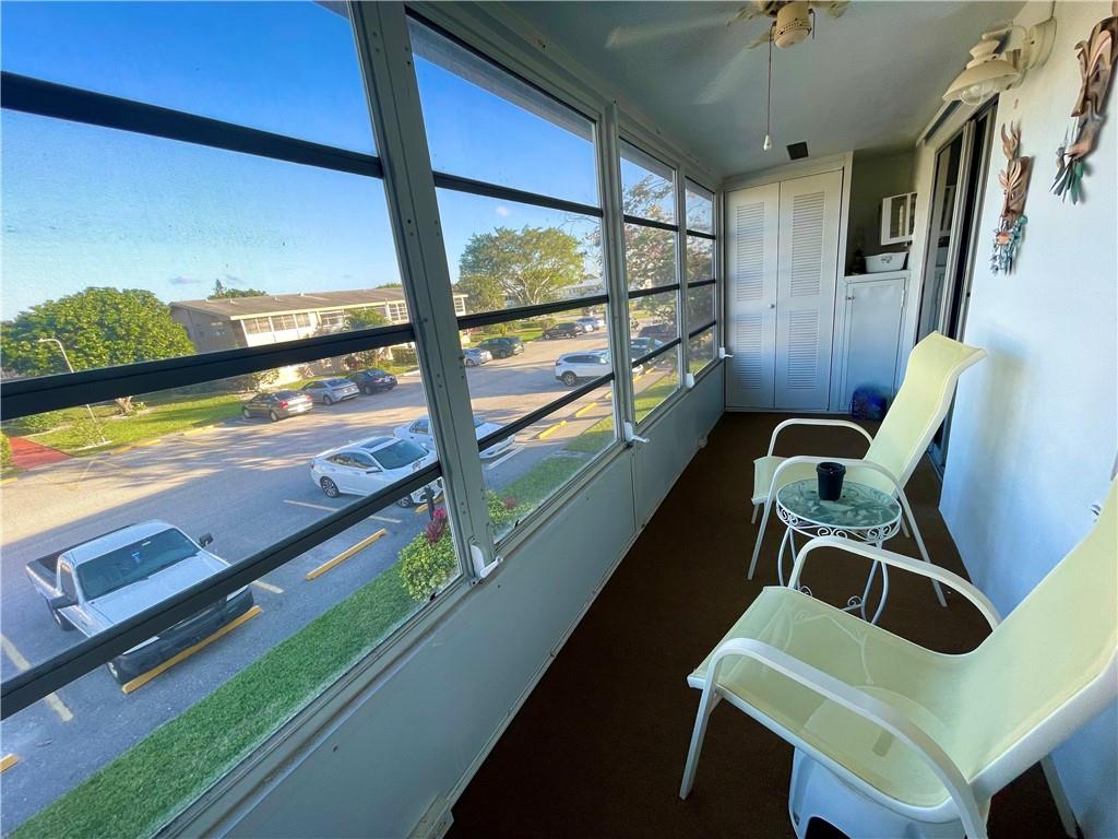 Oversized Century Village 2/1 on the second floor. This unit has newer AC units and laminate floors. Enjoy a water view on one side and a huge patio on the other, with lots of storage. This unit is conveniently located above the mailboxes and laundry room. The building is central, quiet and well maintained. Century Village West Palm beach is a 55+ Community with a well equipped Clubhouse with a multitude of pools, amenities, activities and Courtesy Buses. Furnishings are also negotiable.