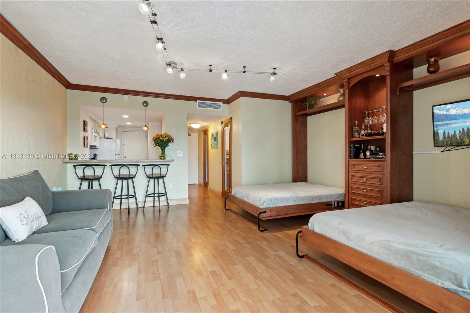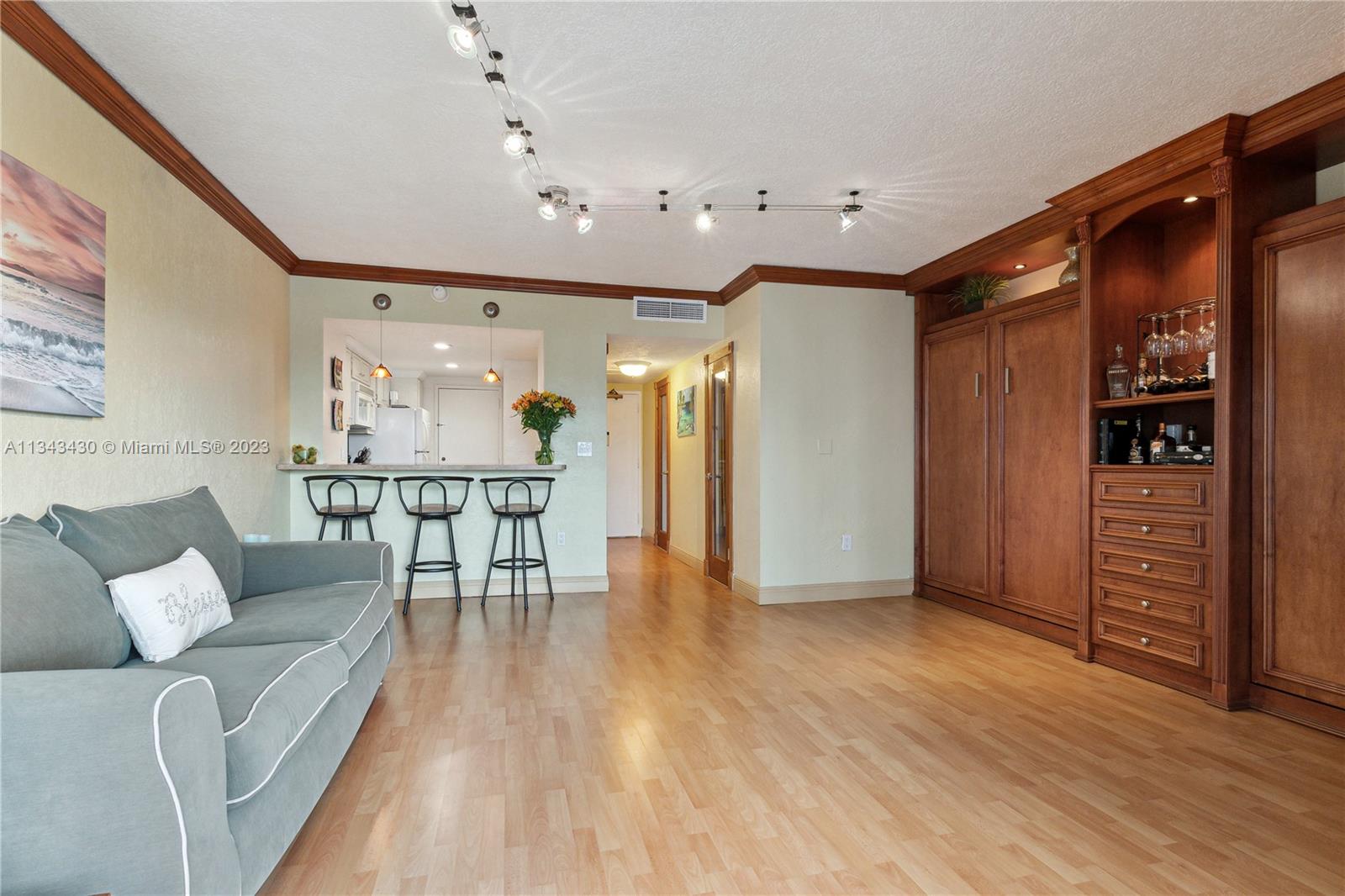 STUDIO EFFICIENCY, ON THE INTRACOASTAL, OCEAN VIEW TOO! PEACEFUL/ SERENE WATER VIEWS NIGHT AND DAY! LARGE TERRACE, FURNISHED AND APPOINTED, READY FOR VACATION OR FULL TIME LIVING .FULL KITCHEN/BREAKFAST BAR, FULL MASTER BATH, LARGE LIVING AREA WITH 2 CUSTOM BUILT MURPHY BEDS (SLEEPS 4) BETTER THAN A HOTEL! FULL WALK IN CLOSET, LINEN/ UTILITY CLOSET, 1 OUTSIDE PARKING SPACE (COVERED AVAIL FROM ASSN) MAINT INC'S WIFI, CABLE, A/C, WATER ,PARKING, SECURITY,RESERVE FUND, GREAT AMENITIES. BEACH SERVICE, 2 POOLS, 2 REST'S SNACK BAR ,2 GYMS, TENNIS, PICKELBALL, BBQ, BOAT DOCKS, SALON, CONV STORES, COURTESY BUS, BILLIARDS, CARD ROOM, BASKETBALL, SHUFFLEBOARD, GOLF PUTTING,CLASSES/ACTIVITIES ETC. PLEASE SEE BROKER REMARKS