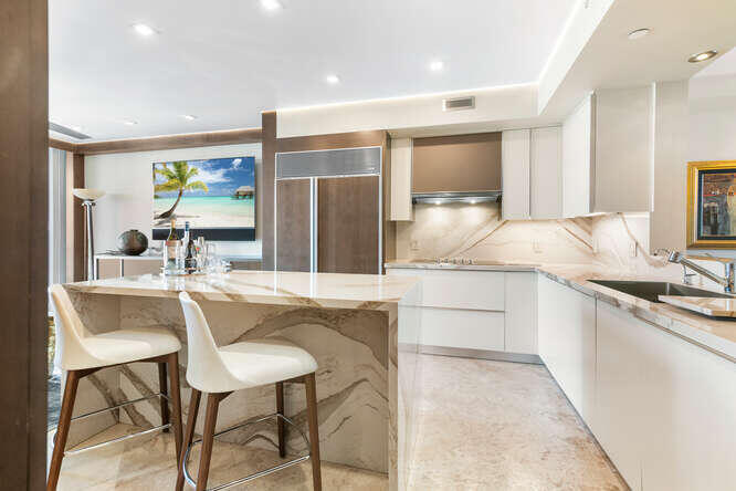If you're looking for an elegant, serene, completely renovated home, then this condo is for you. 2130 sq ft on the 23rd floor with 2 beds/2,5 baths, 2 parking spaces, den, and office in sunny Ft. Lauderdale. The building also has 2 pools (1 beachside), a 2 story gym with squash court, party rooms, conference room, valet service and more.This condo has top of the line upgrades like quartz counter tops in kitchen and bathrooms, marble floors, blackout electric shades in bedrooms, wood kitchen cabinets, and surround sound.