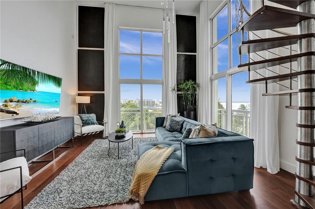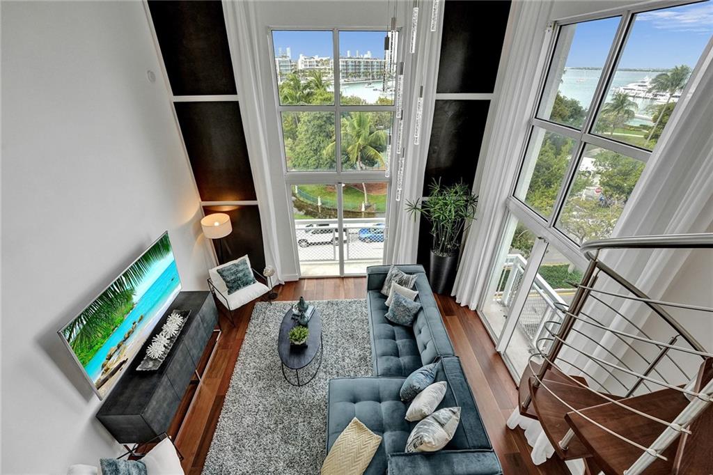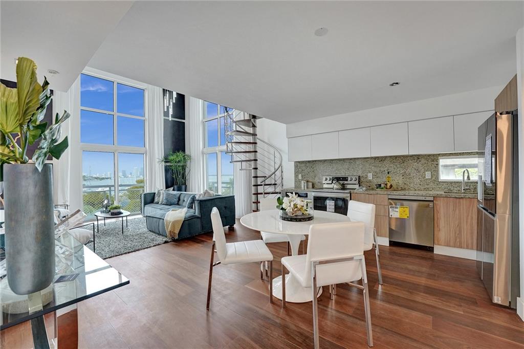 Beautiful 2/2 unique loft-style home overlooking Biscayne Bay. Custom design split/level living area showcases 20' ceilings & floor-to-ceiling windows. Features refinished custom wide plank Brazilian wood floors & all brand new top-of-the-line LG appliances. The upstairs loft/bedroom features an alcove office, an oversized closet and a large primary bathroom w/ built-in LED lighted waterfall shower head & vanity w/ double sinks. Miami Beach's Maurice Gibb park is directly across the street, featuring a playground, dog area & overlooks Biscayne Bay. Located in one of South Beach's hottest neighborhoods, Sunset Harbor & all of its renowned restaurants & aquatic activities with kayak rentals available downstairs. Located a few blocks from Lincoln Rd & the beaches. See the 3-D virtual tour.