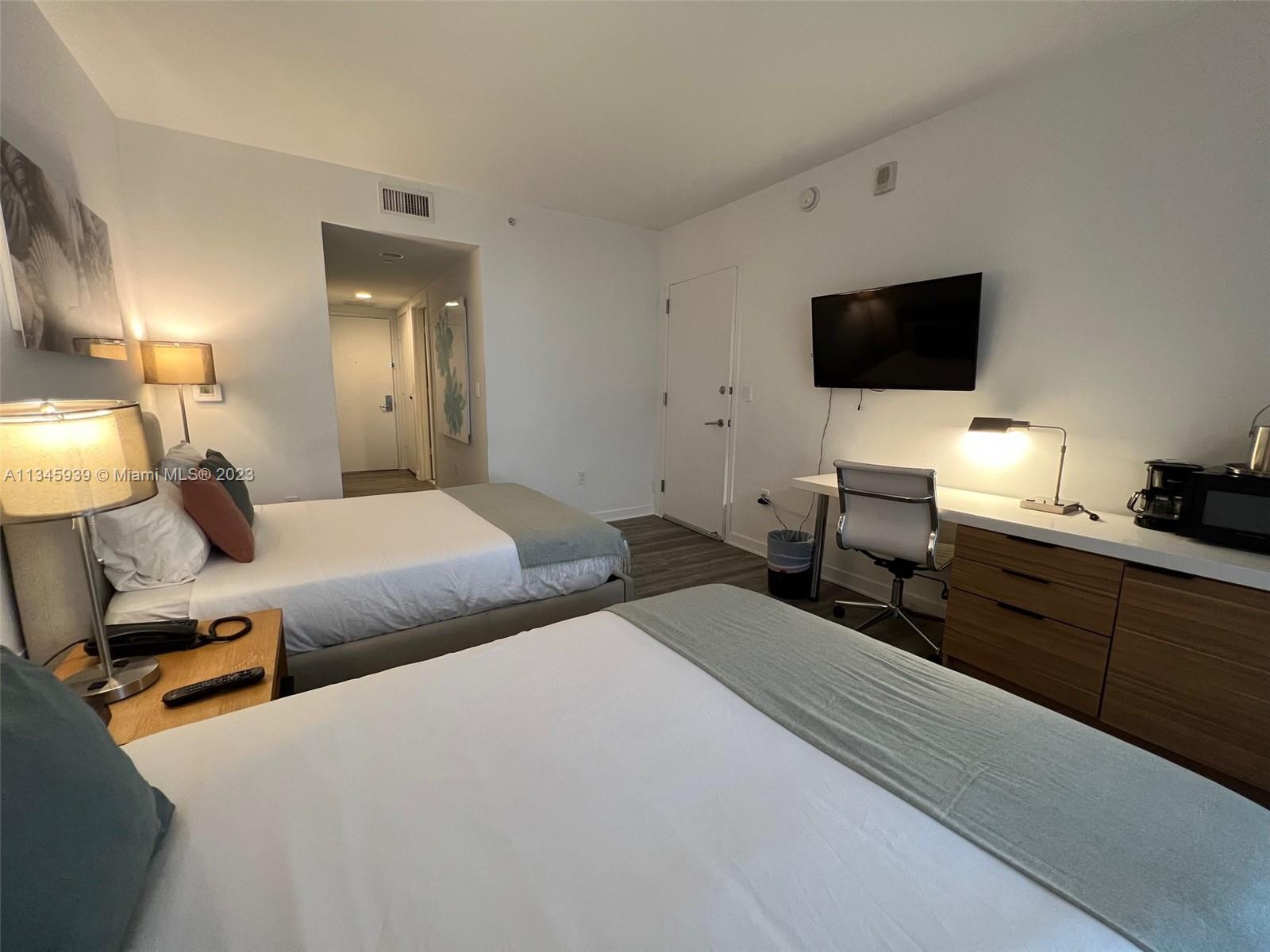 2Bed/2Bath At The Beachwalk Resort with Amazing Views. Totally Furnished Property is composed of 2 units in 1 as 803A & 803B(803A one Bedroom Suite Containing a Large Kitchen W/ SS Appliances, washer, and dryer, Wood Cabinets & Dining Table. Living With Couch & TV. Large King Bedroom Suite W/Walk-In Closet & Updated Bath. Balcony Access From Both Living & Bedroom and Tile Floor)&(803 B has two Double Beds, Walk-In Closet And Desk Area w/small refrigerator and microwave, Additional Balcony & Updated Bath With Frameless Shower Enclosure)Rooftop & Waterfront Pool, Gym, complimentary shuttle to the beach. Income from the first day, NO RESTRICTIONS, can be rented Daily by AIRBNB, BOOKING, VRBO, EXPEDIA, ETC. HOA Included Power, Wifi, Cable, Water & Bldg Insurance. Porcelain Floor and Vinyl.