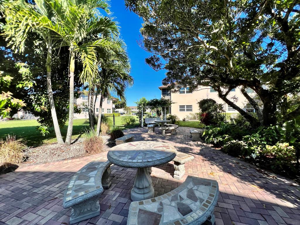 A Delightful & Tranquil Spot to Call Home in 55+ Century Village! First Floor 1/1 in a lovely building. Neutral tile flooring throughout. Enclosed Lanai. Accordion shutters front & back. Well located within the building - next to the laundry room and across from the pretty resident patio. Nicely maintained building with roof replaced in 2020, updated railings, and a beautiful resident patio with park like landscaping. Sold AS IS. Century Village is a 55+ community with so much to offer...