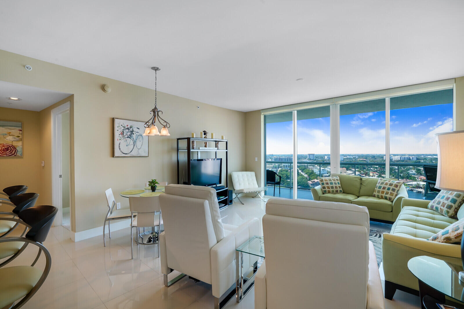 Welcome to the Plaza at Oceanside ! Luxury Lifestyle with Gorgeous Intracoastal/Marina/ City and Sunset Views ! This immaculate 12th floor 2 bdrm/2 bath split design sky residence features an open floor plan and floor to ceiling impact glass sliders from each room to the huge terrace. The entry foyer opens into living and dining areas which capture the beautiful panoramic view. The European designer kitchen features granite countertops, Poggenpohl European cabinetry and Viking s.s. appliances. The expansive master suite opens to the terrace, has two large walk-in closets and a luxurious bathroom with Jacuzzi tub, separate shower and two-sink vanity. The guest suite to the left of the main salon has a walk-in closet and full bath.