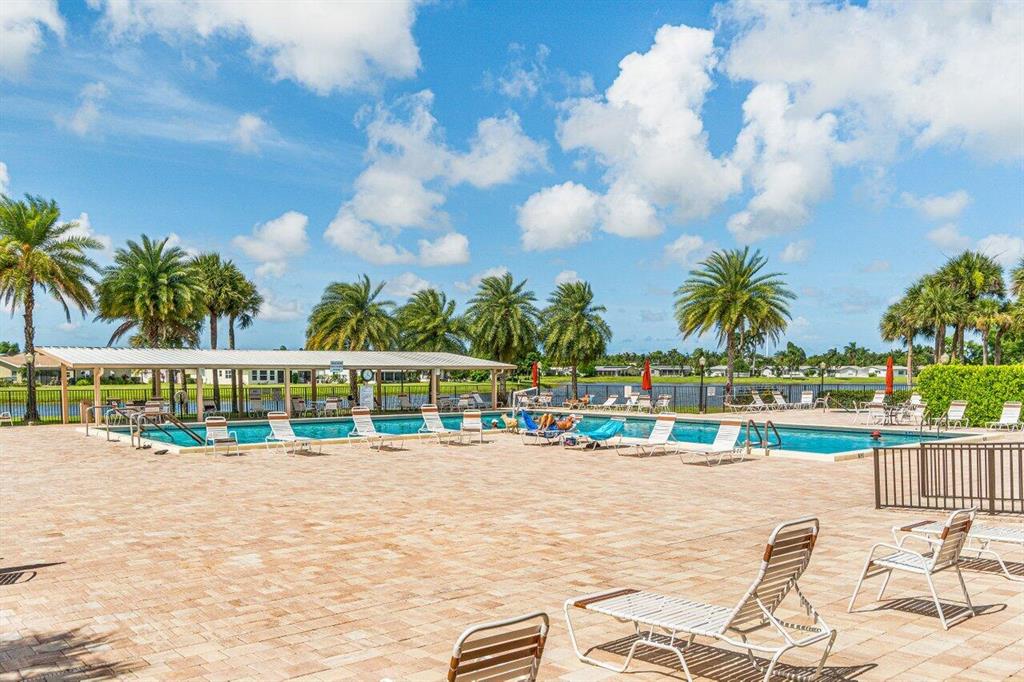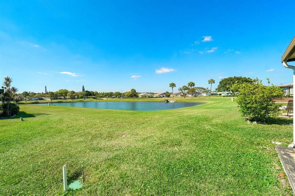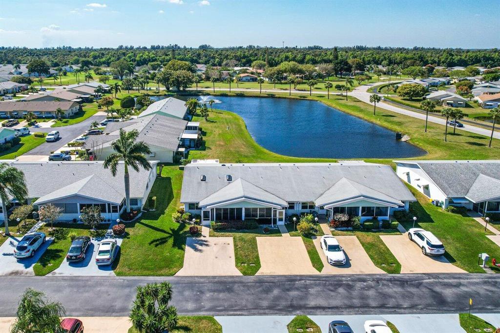 Private 55 + Gated Golf Course community 2bd 2ba Villa low HOA fees, Golf includ. in West Palm Beach. Villa features large tiled living area w/dining and galley kitchen, skylights, both bedrooms have large walk in closets with newer window & sliders. Stepping outside you'll appreciate tranquil lake views from covered screen patio or sit out on your screen covered porch in the evening and enjoy socializing w/neighbors. Community boast private golf course, tennis, pool, clubhouse, shuffleboard, fitness center & on site manager... all of this situated close to international airport, fine dining, theater and shopping.