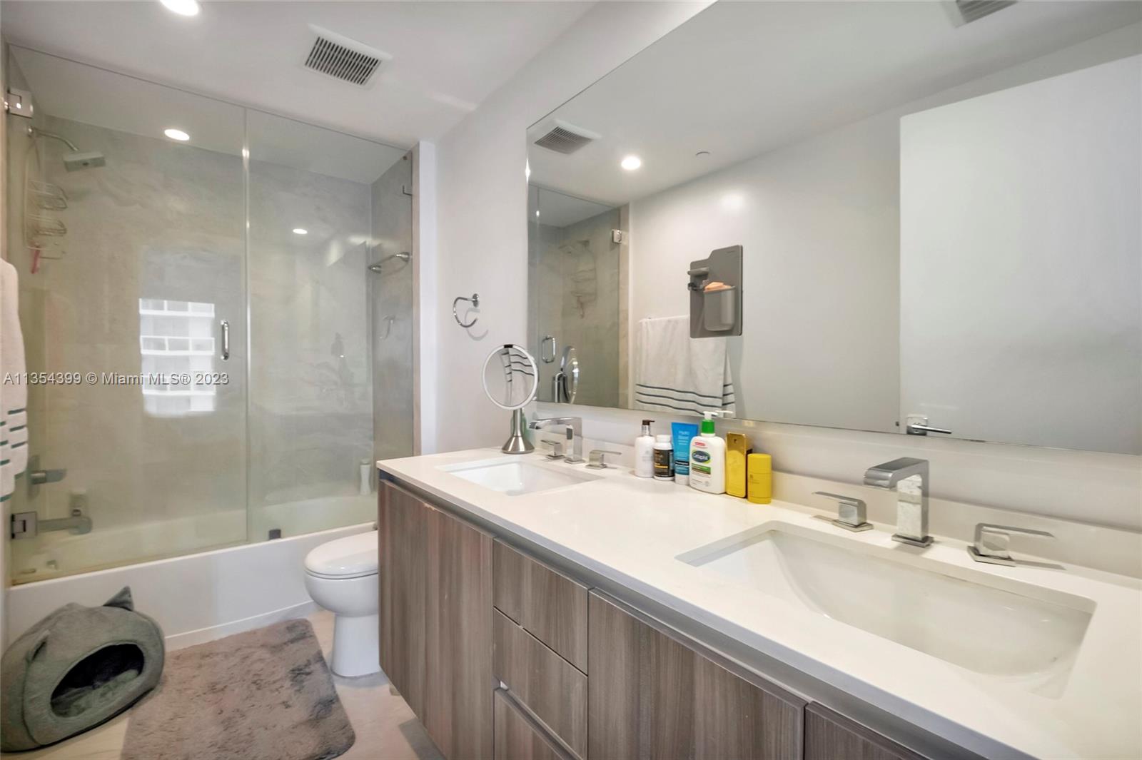 RENTED MONTH TO MONTH AT $5K/MTH. FURNITURE INCLUDED! WATER FRONT VIEWS LOCATED IN EDGEWATER! 2 BEDS WITH A DEN! 1 PARKING SPACE. Wraparound spacious balcony. Private Elevator. Kitchen features Quartz countertops, Stainless Steel Appliances. washer and dryer in unit. Master bedroom with master bath en-suite features separate tub and walk-in shower. Dual sinks. Second bedroom with bathroom en-suite. Walk-in closets. Centrally located minutes from Downtown Miami and Miami Design and Art district. Amenities include 2 curved sunrise/sunset pools, hot tub, theater, spa, ultimate gym, yoga, BBQ area, kids playroom, business center, social room, billiard/game room and library. 1 PARKING SPACE.