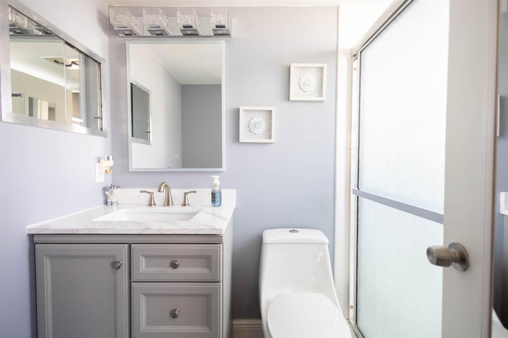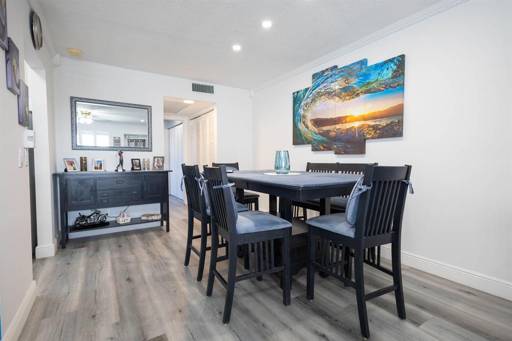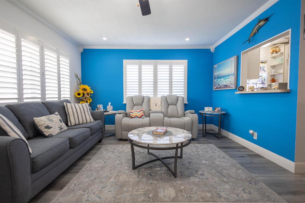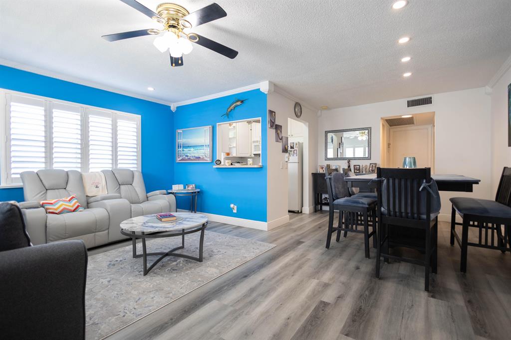 PRICED TO SELL FAST - Unique renovated, larger 2nd floor 1 bedroom 1.5 bath corner unit with central A/C, condenser installed in 2022 & close to the elevator. The building has been exceptionally maintained & steps to the many resort style amenities enjoyed by the community, including indoor/outdoor pools, resistance pool, clubhouse, library, activity & card rooms, fully equipped fitness center, billiards, tennis & performance theater. Design features in this recently renovated unit include crown molding, LVT flooring, plantation shutters, recess led pocket ceiling lights, open living & dining area & even the furniture is negotiable. Century Village is a 55+ community in West Palm Beach, famed for it's lifestyle & many amenities & proximity to downtown WPB airport & Beaches