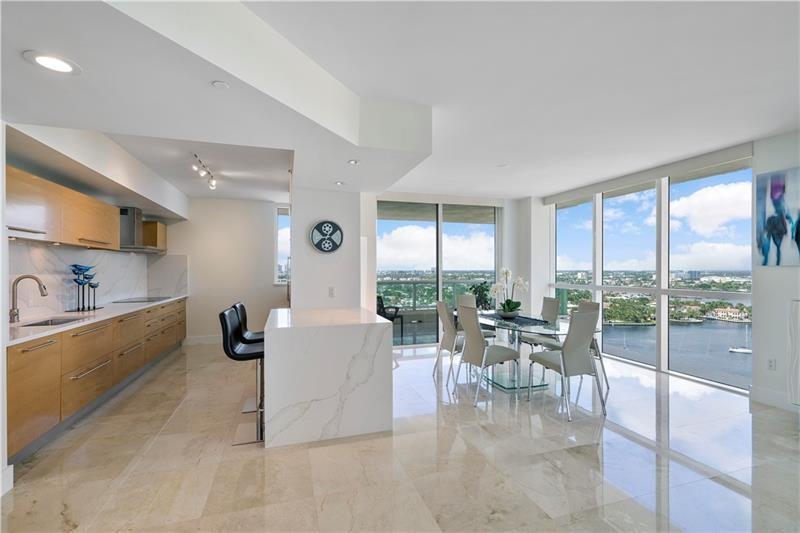 FULLY REMODELED open-concept 2/2 with CUSTOM designed kitchen, marble flooring, fixtures & more! Highly desirable NW corner residence offers dramatic views of the Ocean, Intracoastal Waterways, & Downtown Skyline! Designer recessed lighting in new reflective ceiling showcasing ocean, intracoastal & city skyline. The chef's kitchen is equipped with stunning quartzite countertops & custom appliances incl. Sub-Zero & Miele. This exclusive residence includes a private elevator foyer entrance & floor-to-ceiling high impact glass providing views from every room! Las Olas Beach Club is steps away from the beach, dining, entertainment, & includes All Resort-Like 5 Star Amenities such as OceanFront Infinity-Edge Pool (service included),fitness center, Dedicated Concierge, & more!