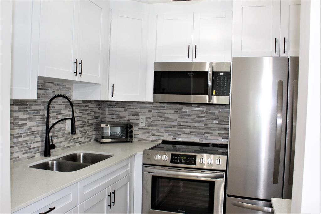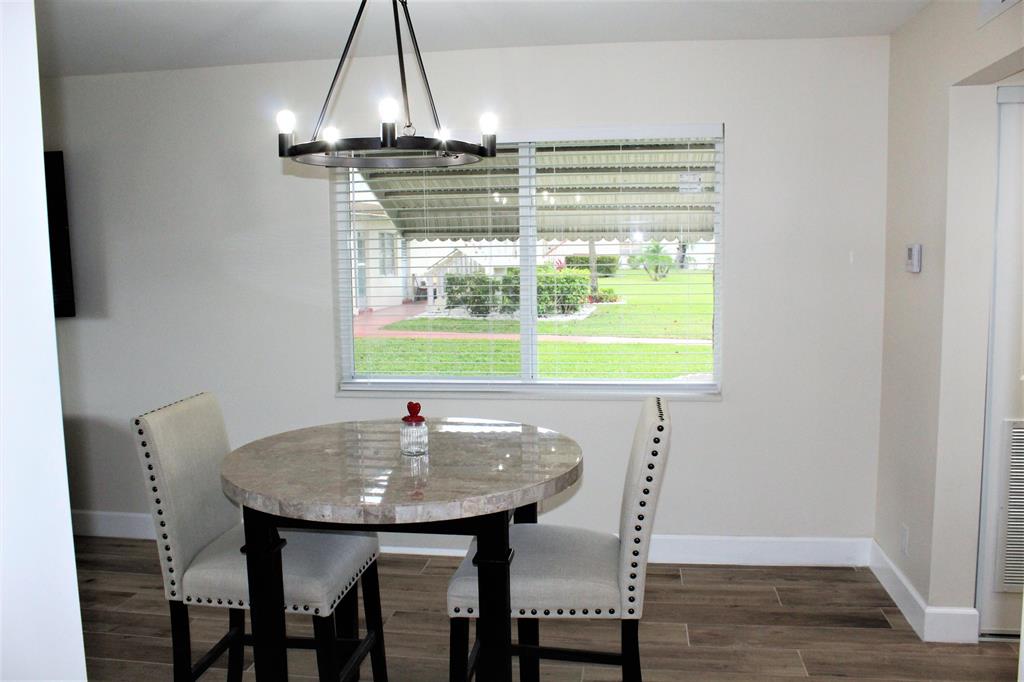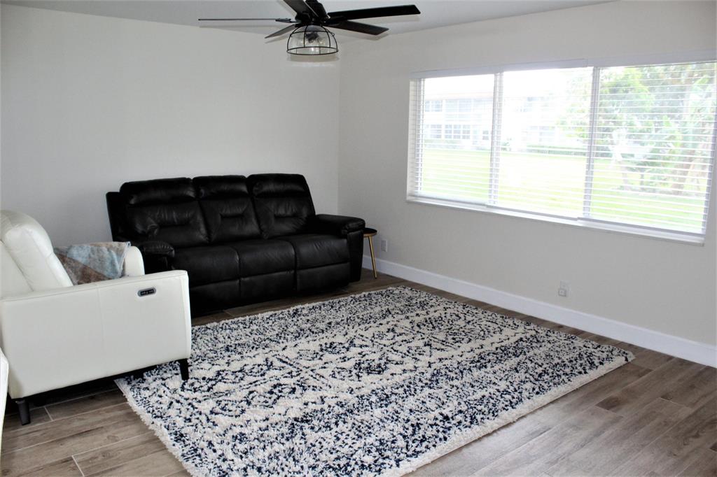 Beautiful 1 bedroom, 1 1/2 bath condo in Century Village. Everything has been updated New central a/c, full impact windows and slider, new plumbing, new electrical panel. Upgraded wood like porcelain floors and neutral paint throughout. The living room and dining room windows overlook green space. The new kitchen has white shaker cabinets, quartz counters, a glass mosaic backsplash and stainless appliances. The master bedroom features a tiled tub/shower combo and an upgraded vanity! The back patio is semi-enclosed, so it is extremely private. Convenient parking in close proximity to the unit. Close to the Haverhill entrance. Many amenities including Indoor pool, outdoor pools, pickle ball, fitness center, clubhouse, tennis, theater and bus service. Cable is included in association fees