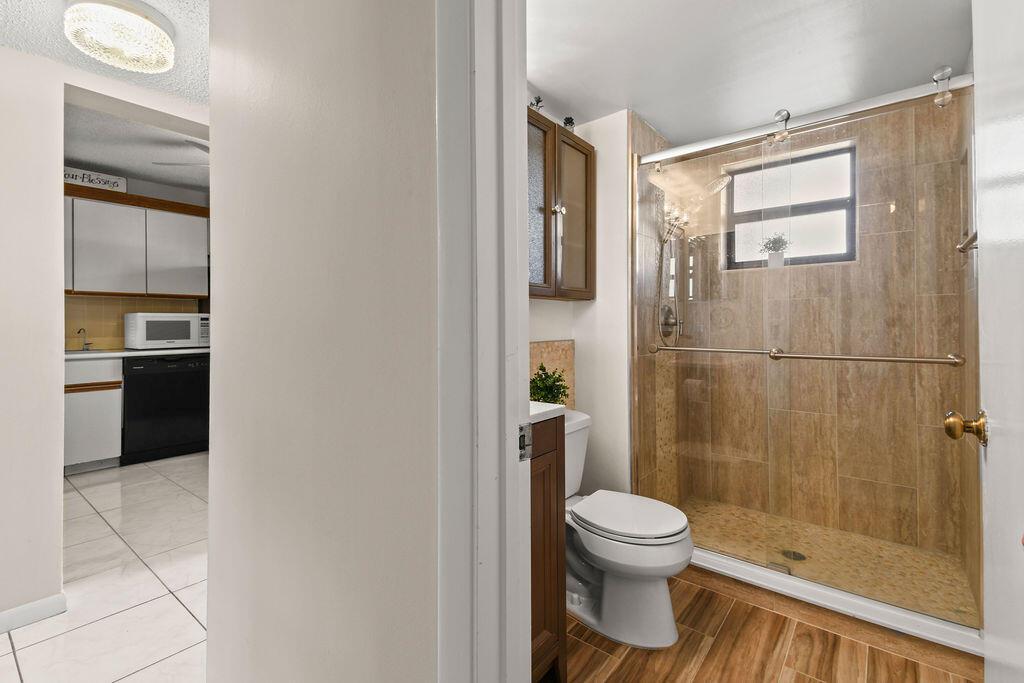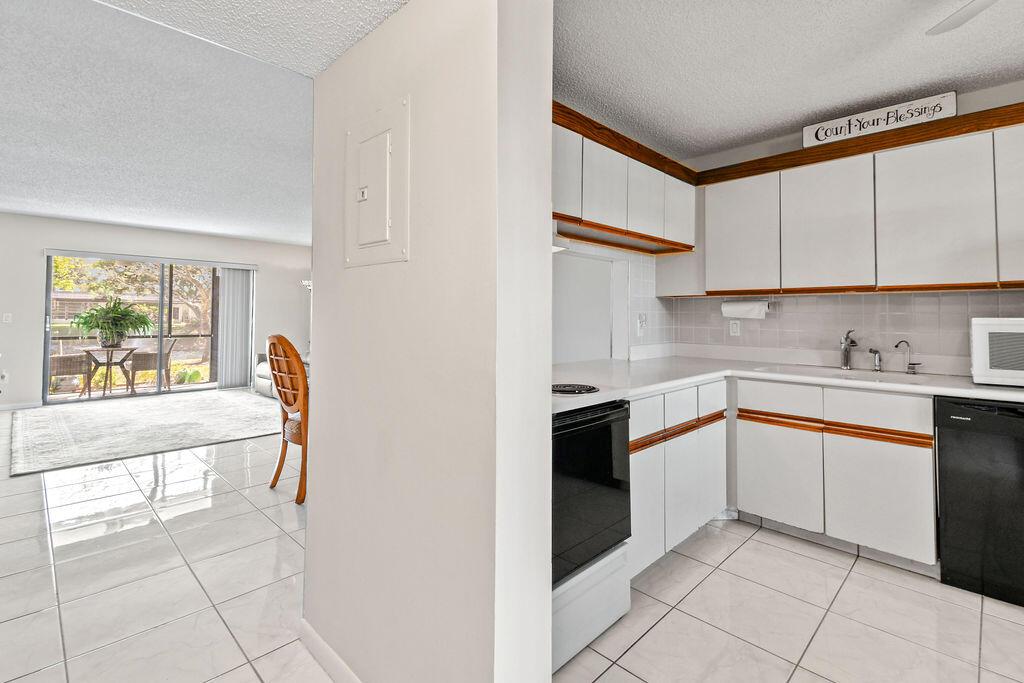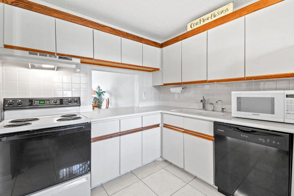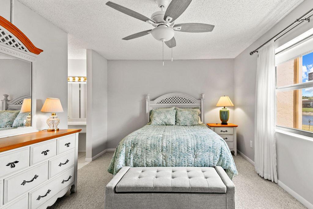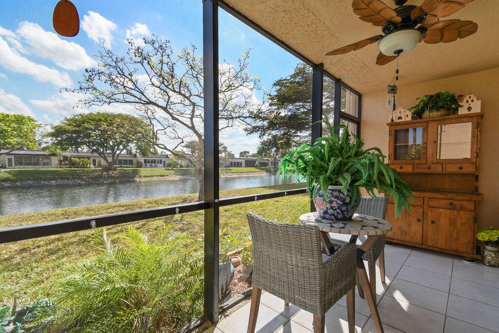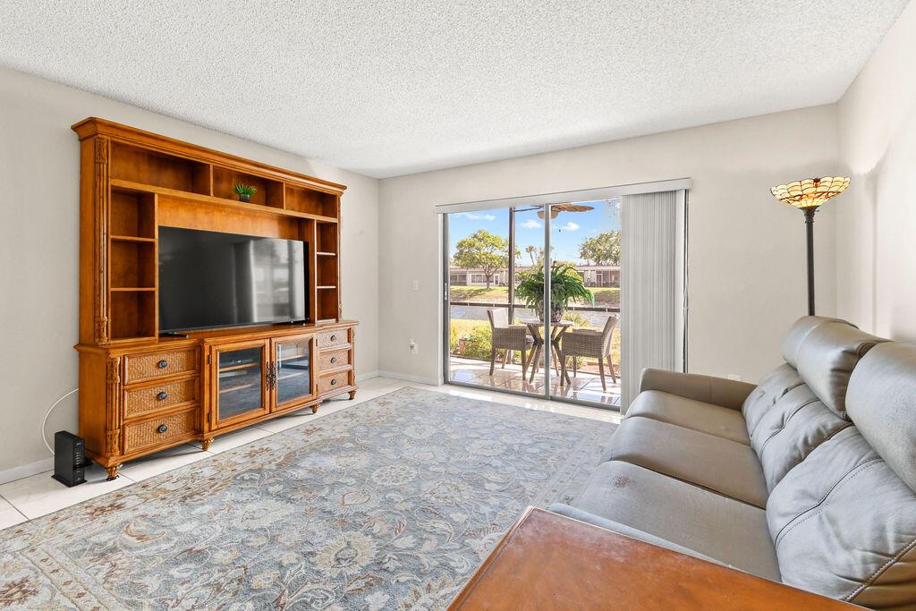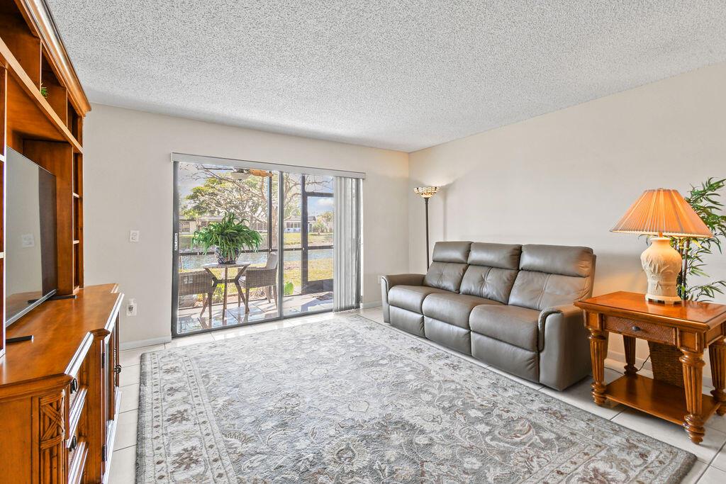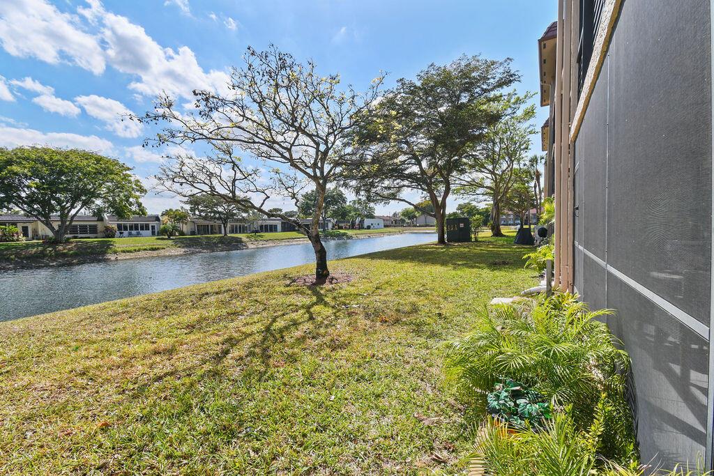 Beautiful 1st floor with lovely water views. The apartment features white tile floors throughout, new impact windows and doors, newer A/C, water heater, & roof. A screened porch walks out to green area and wide canal. The full-size washer and dryer make doing laundry an easy chore and the closets allow for plenty of storage. The 44'' wall mounted TV in Guest Bedroom & the new 66'' smart TV in Master Bedroom is included in the Sale. This is an Apartment to Love! Plus, the satellite pool and clubhouse are close by, courtesy bus twice a week for easy shopping, movies, etc. There are many planned outings such as: movies, trips, plays and more all available to you. Security of manned entry gate Come see the Beautiful Community of Golden Lakes.