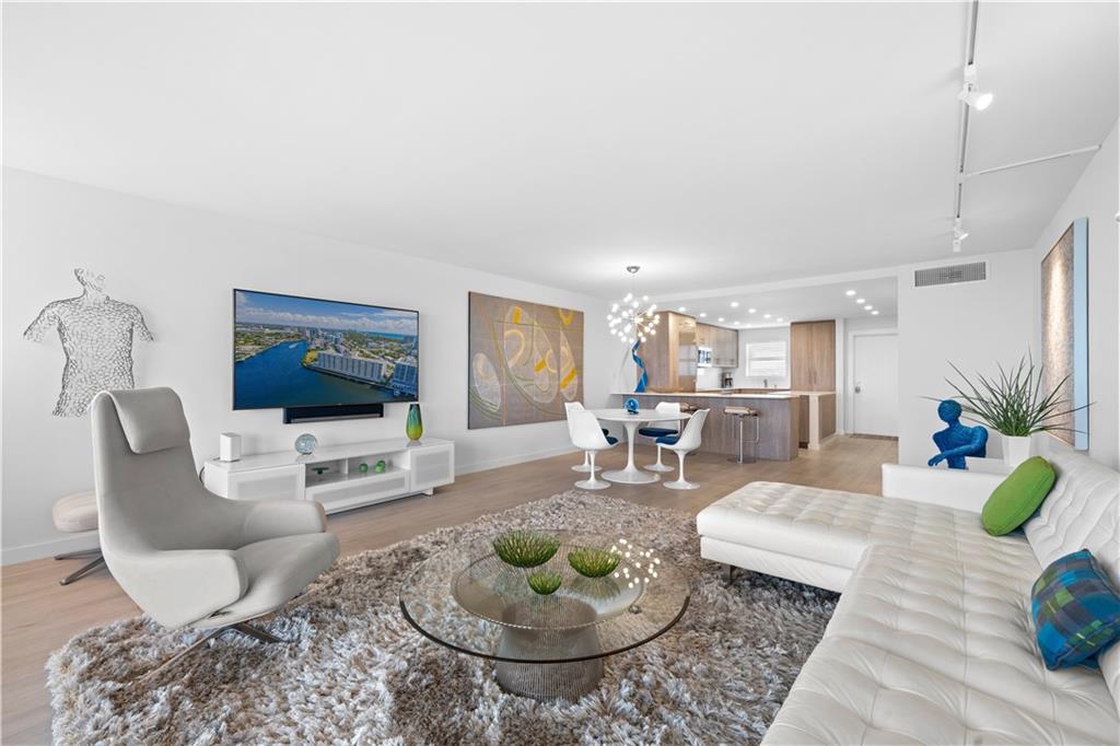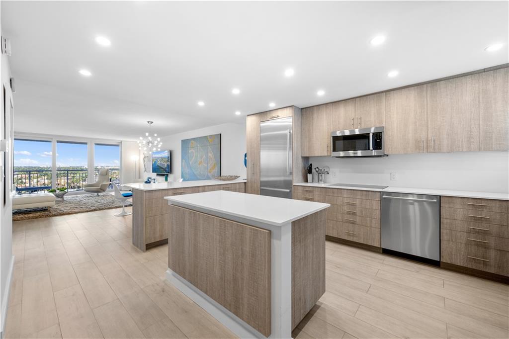 SPECTACULAR BEAUTIFULLY RENOVATED PENTHOUSE WITH PHENOMENAL DIRECT INTRACOASTAL, OCEAN, CRUISE PORT & SKYLINE VIEWS! METICULOUSLY DESIGNED OPEN FLOORPLAN WITH NEUTRAL PORCELIAN PLANK FLOORS THROUGHOUT. CUSTOM DESIGNED KITCHEN BOSCH BUILT IN REFRIGERATOR, DISHWASHER, OVEN & INDUCTION COOKTOP, QUARTZ COUNTER TOPS & FULL-SIZE WASHER & DRYER. PRIMARY BEDROOM COMFORTABLY FITS A KING-SIZED BED, DESK & LOUNGE CHAIR. BOTH MODERN BATHS HAVE QUARTZ COUNTER TOPS FLOATING VANITIES & HANSGROHE FIXTURES. CUSTOM LIGHTING, WELL DESIGNED ELFA CLOSETS LARGE PRIVATE BALCONY WITH MOTERIZED SUNSHADE. GARAGE PARKING SPACE & STORAGE ARE INCLUDED. AMENITIES INCLUDE HEATED POOL, BBQ-GRILL, GYM, SAUNAS, SHOWERS, BILLIARD ROOM, CLUB ROOM, ROOF TOP SUN DECK & MORE. GREAT WALK TO FORT LAUDERDALE BEACH LOCATION!