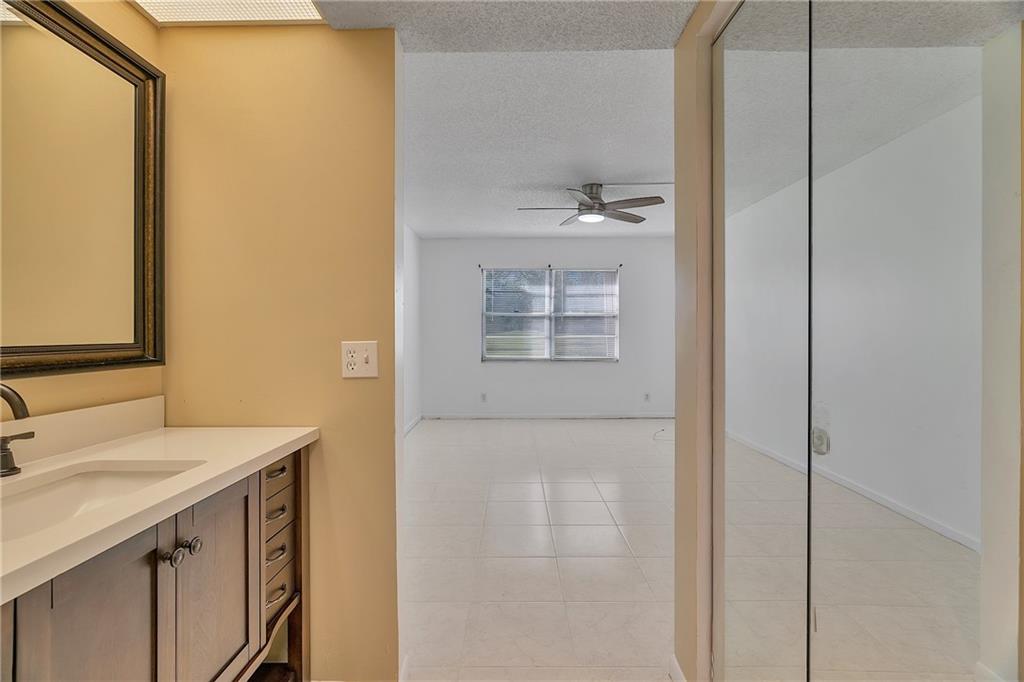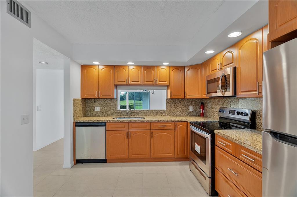 Welcome home to this extremely well-kept 2 bed, 2 bath condo in the most active 55+ community in South Florida. This unit features a first floor entrance for ease of access at any mobility level and a bright golf course view directly out the back porch that's perfect for enjoying your morning coffee. The sellers recently refurbished the tile and tubs in both bathrooms and added brand-new vanities, as well as a new set of stainless steel appliances in the kitchen. One walkthrough of this unit will show the quality of care that has been taken. Book your showings today.
